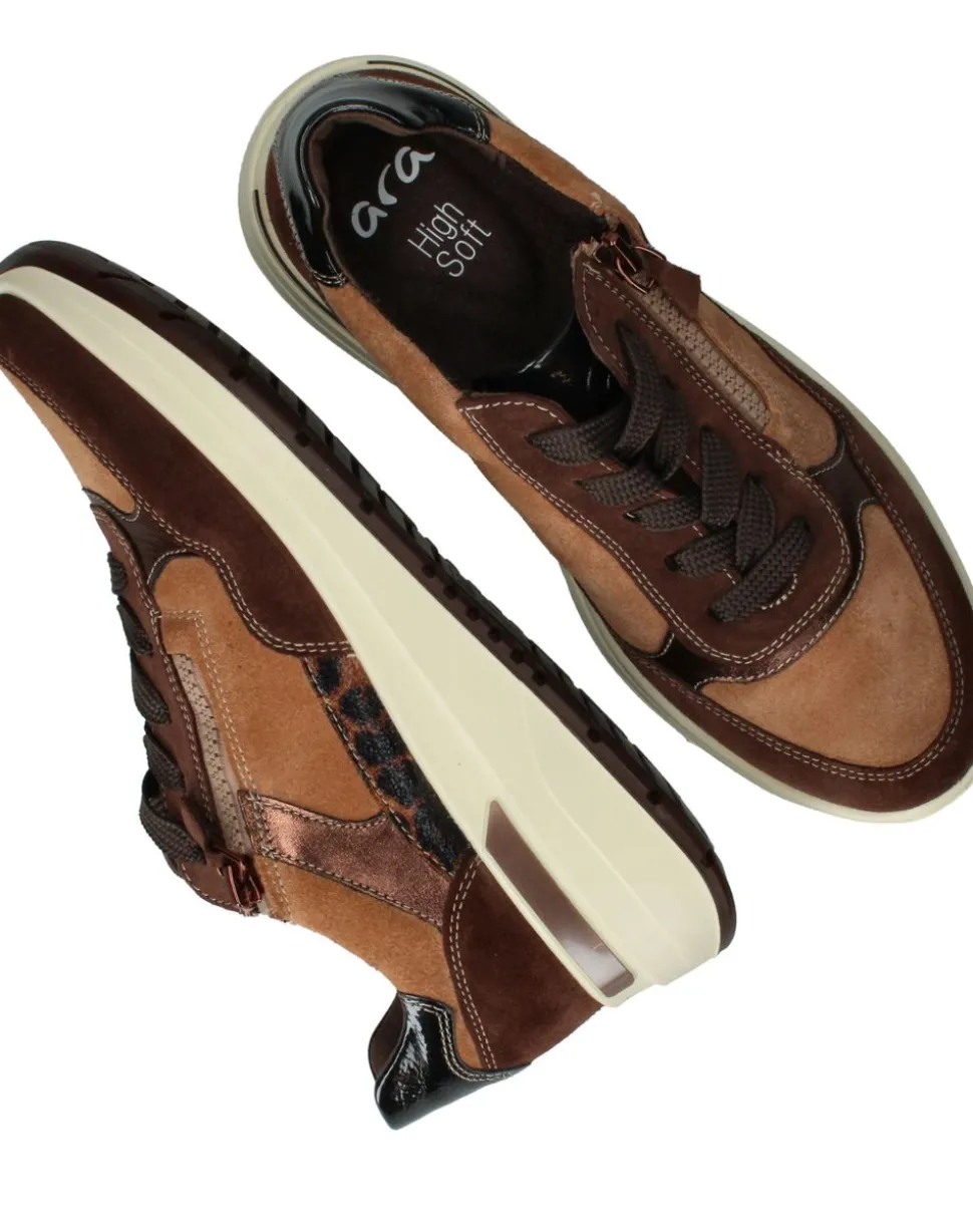 Deze Ara Garda sneaker voor is de perfecte mix van stijl en comfort. De warme bruin- en beigetinten geven deze een trendy uitstraling, terwijl het subtiele panteraccent een speels detail toevoegt. Dankzij de lichte zool en comfortabele pasvorm is deze schoen ideaal voor elke dag. Zoals je van mag verwachten, zit hij heerlijk en is hij makkelijk aan te trekken met de handige ritssluiting.