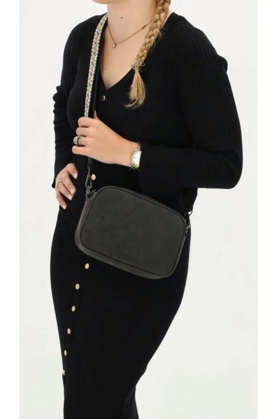 Deze stijlvolle van is de perfecte metgezel voor dagelijks gebruik. Gemaakt van stevig , voelt hij zacht aan en is hij tegelijkertijd duurzaam en onderhoudsvriendelijk. De zwarte kleur geeft een tijdloze look, terwijl de verstelbare schouderband met kleurrijk patroon een speelse twist toevoegt. Een must-have voor die praktisch en modieus willen combineren.