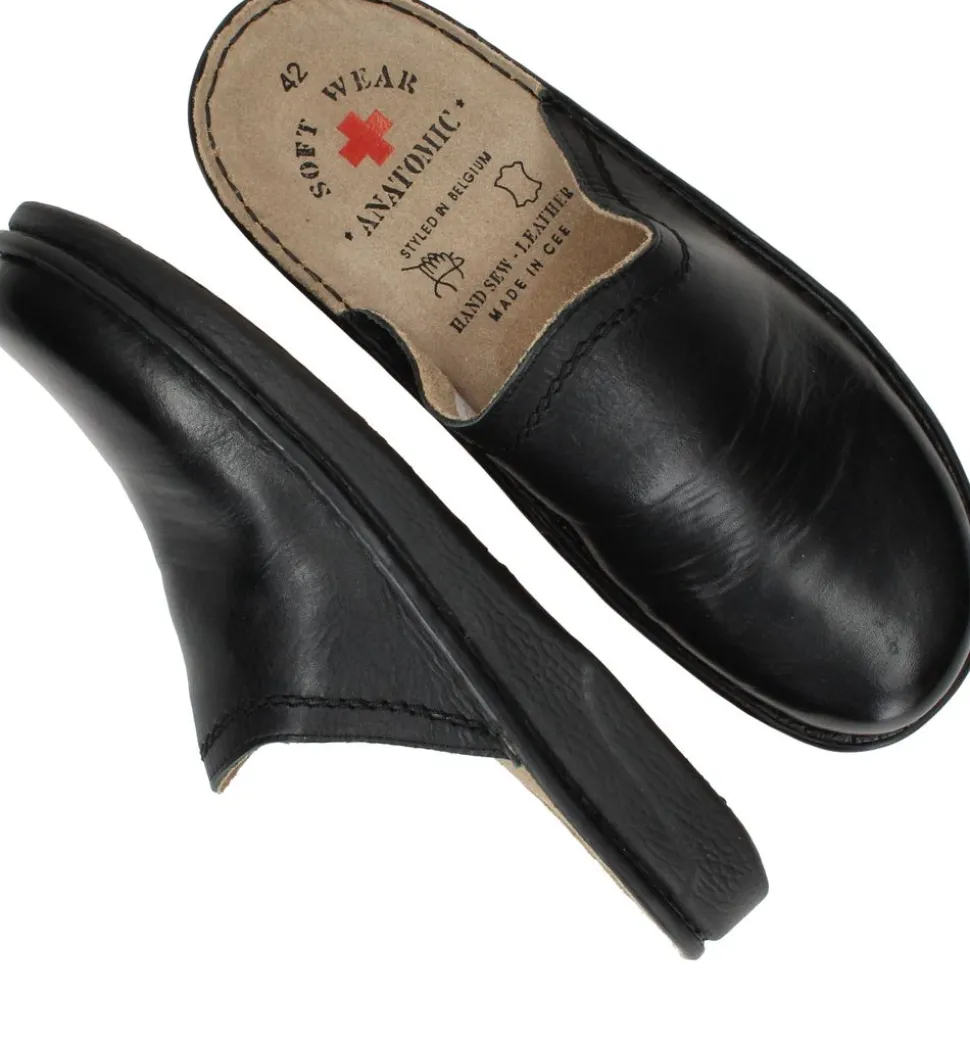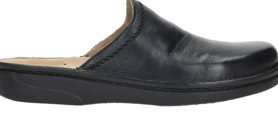 - De pantoffel is gemaakt van leer en heeft een extra zacht voetbed.