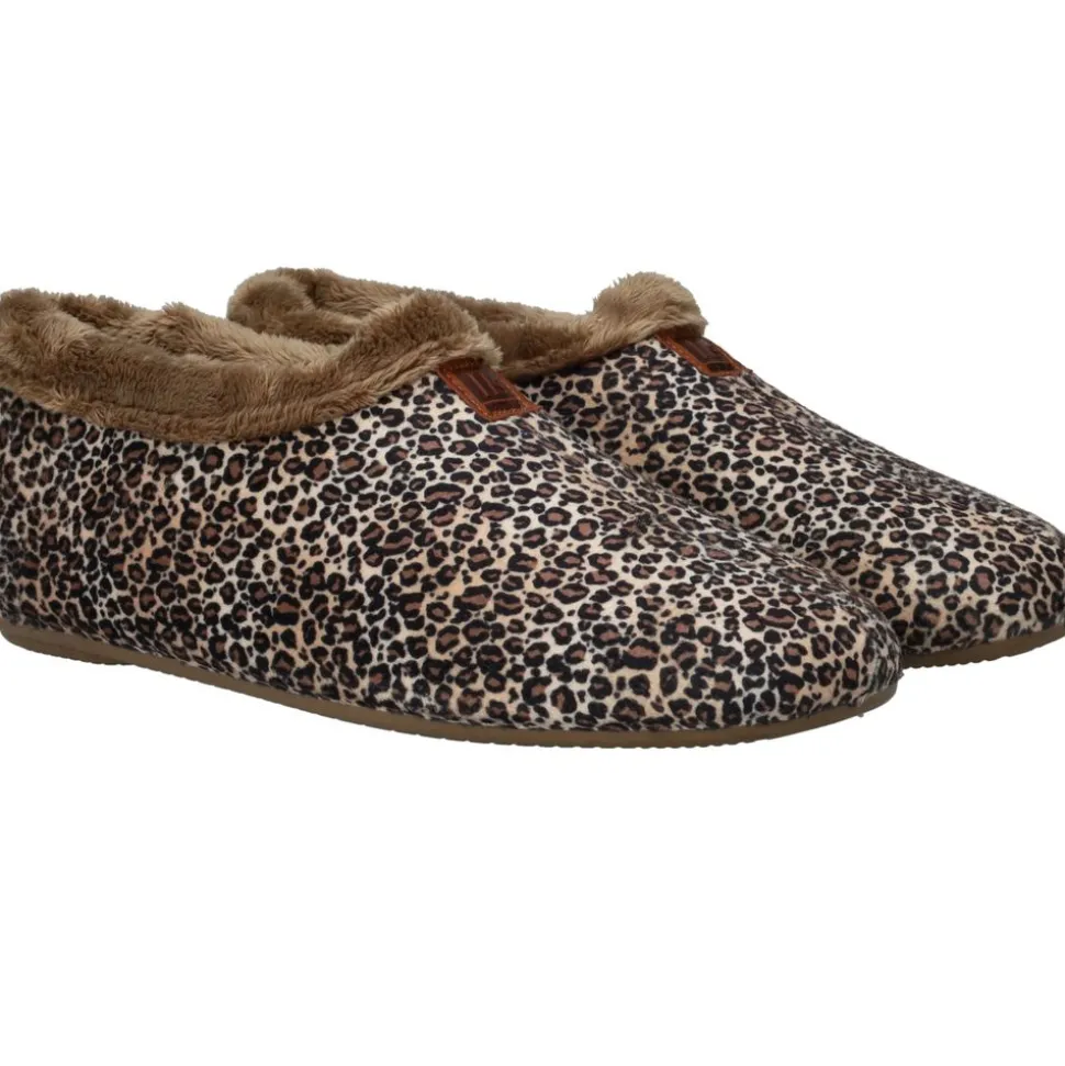 Deze voor is uitgevoerd in zacht textiel met een speelse dierenprint en een knusse rand van faux fur. Het model sluit zacht om de wreef en voelt direct comfortabel. De frisse tint met print geeft je loungewear een modieuze twist en maakt dit model tot jouw favoriete huisgenoot voor relaxte momenten.