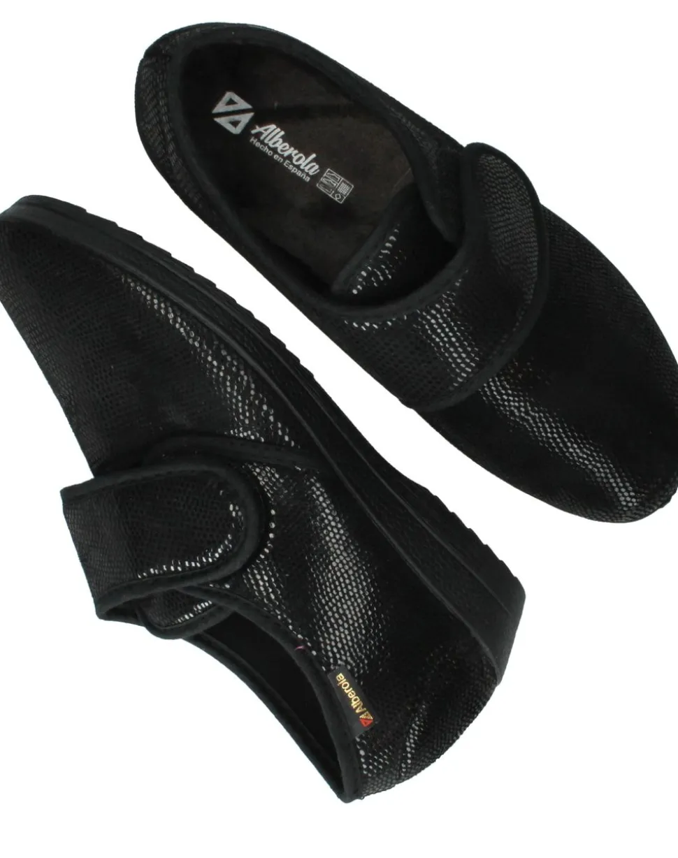 Deze voor in klassiek is ontworpen voor optimaal gemak en draagcomfort. De buitenkant is gemaakt van zacht textiel met een subtiele glans en voelt aangenaam aan. Dankzij de praktische klittenbandsluiting is de pantoffel eenvoudig aan en uit te trekken, ook bij een hogere wreef of gevoelige voeten. De textielen voering zorgt voor warmte en ademend comfort, waardoor je voeten heerlijk ontspannen blijven.