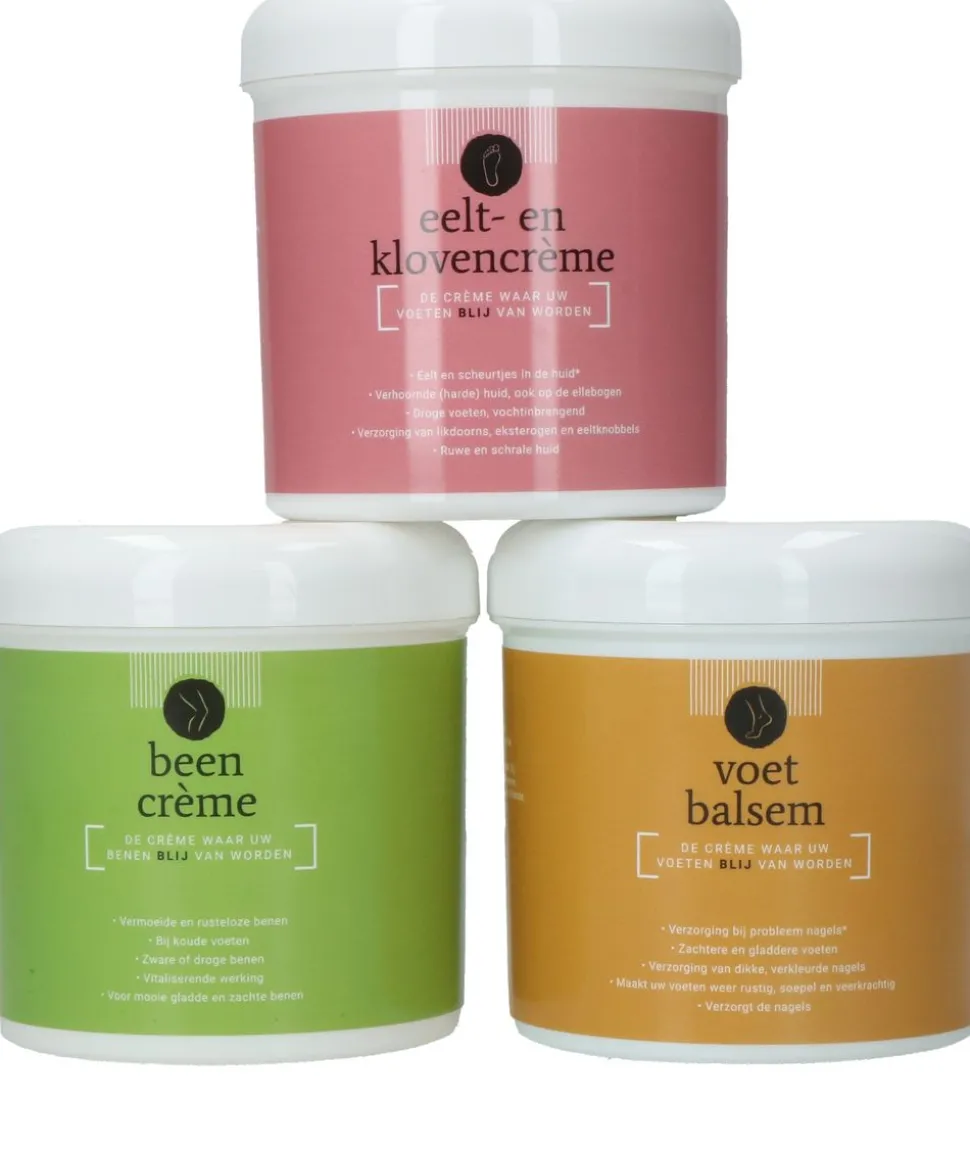 Maak je voeten weer vrolijk met de blije voeten eelt- en klovencrème! De crème bevat de werkende bestandsdelen ureum en allantoine. Ureum maakt eelt week en zacht, wardoor het makkelijk en veilig te verwijderen is. Allantoine laat kloven sneller genezen. Dit maakt de crème geschikt voor eelt en kloven (uitwendig gebruik), verhoornde (harde huid, droge voeten, verzorging van likdoors, eksterogen, eeltknobbels en een ruwe en schrale huid. Door de unieke samenstelling van exctracten wordt de crème snel door de huid opgenomen en wordt deze extra gehydrateerd! De crème is daarom ook geschikt voor droge voeten. Gebruiksaanwijzing: aanbrengen op eelt of verhoornde huid. Voor eeltverwijdering neem een warm voetenbad en droog de voeten goed af. Eelt verwijderen, bij voorkeur met een pluimsteem en daarna de eelt- en klovencrème aanbrengen. De eerste week vervolgen met 2x per dag de crème te smeren. Daarna 1x per dag of om de 2 dagen om eelvorming te verminderen.
