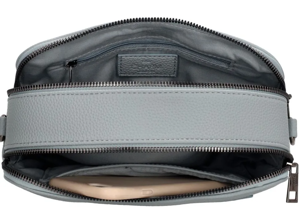 Deze crossbodytas uit de damestassen collectie van Charm is gemaakt van soepel kunstleer in een zachte blauwe kleur. De tas combineert een minimalistisch uiterlijk met praktische functies voor vrouwen die on-the-go zijn, maar er wél stijlvol bij willen lopen.