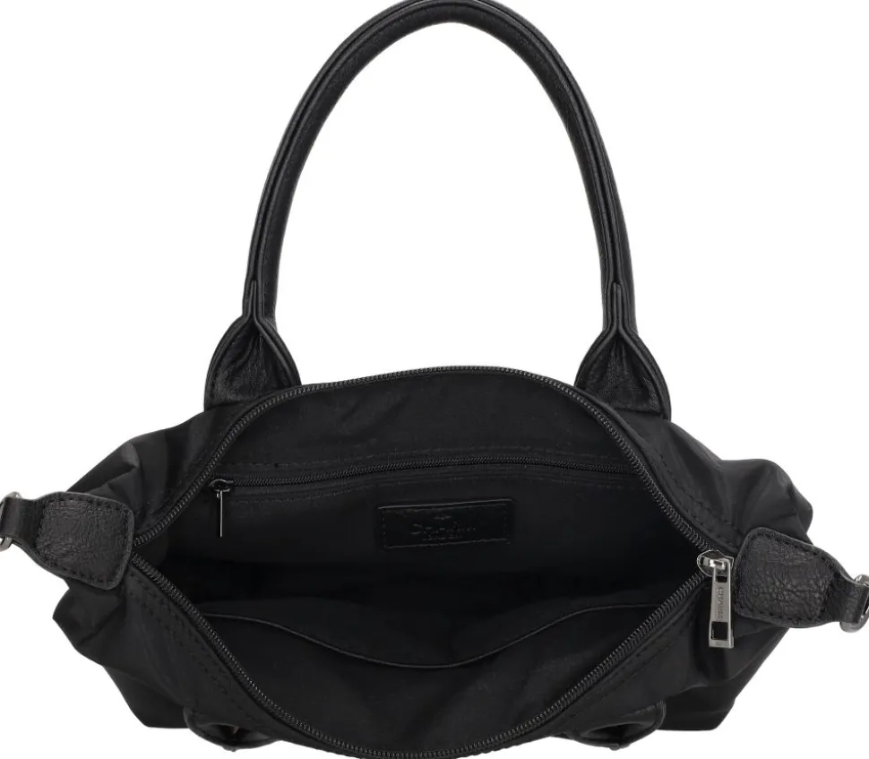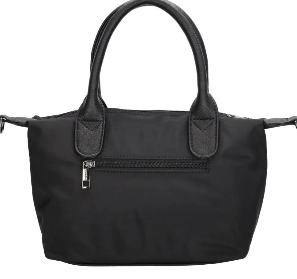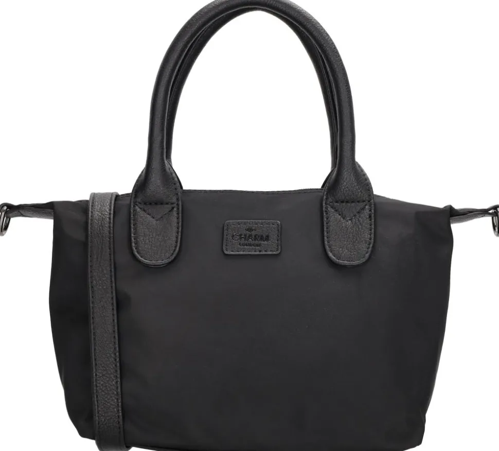 Deze handtas uit de damestassen collectie van Charm is gemaakt van stevig synthetisch materiaal in klassiek zwart, met ton-sur-ton kunstleren details. De tas is lichtgewicht, slijtvast en ideaal voor wie houdt van een functioneel en stijlvol ontwerp.