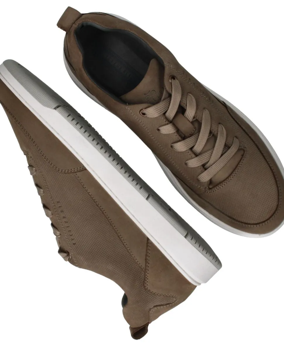Deze taupekleurige Cycleur de Luxe Kaveri veterschoenen combineren een strak design met hoogwaardig comfort. Het bovenwerk van nubuck leer voelt soepel en luxe aan, terwijl de leren voering zorgt voor een ademend en zacht binnenklimaat. Dankzij de stevige witte zool en het sportieve silhouet is deze veterschoen perfect voor heren die houden van een casual, maar verzorgde look.