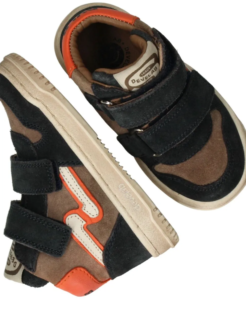 Deze Develab sneaker in multikleur is gemaakt van suède en leer. Dankzij de klittenbandsluiting trek je ‘m makkelijk aan en uit, en het uitneembare voetbed zorgt voor extra comfort.