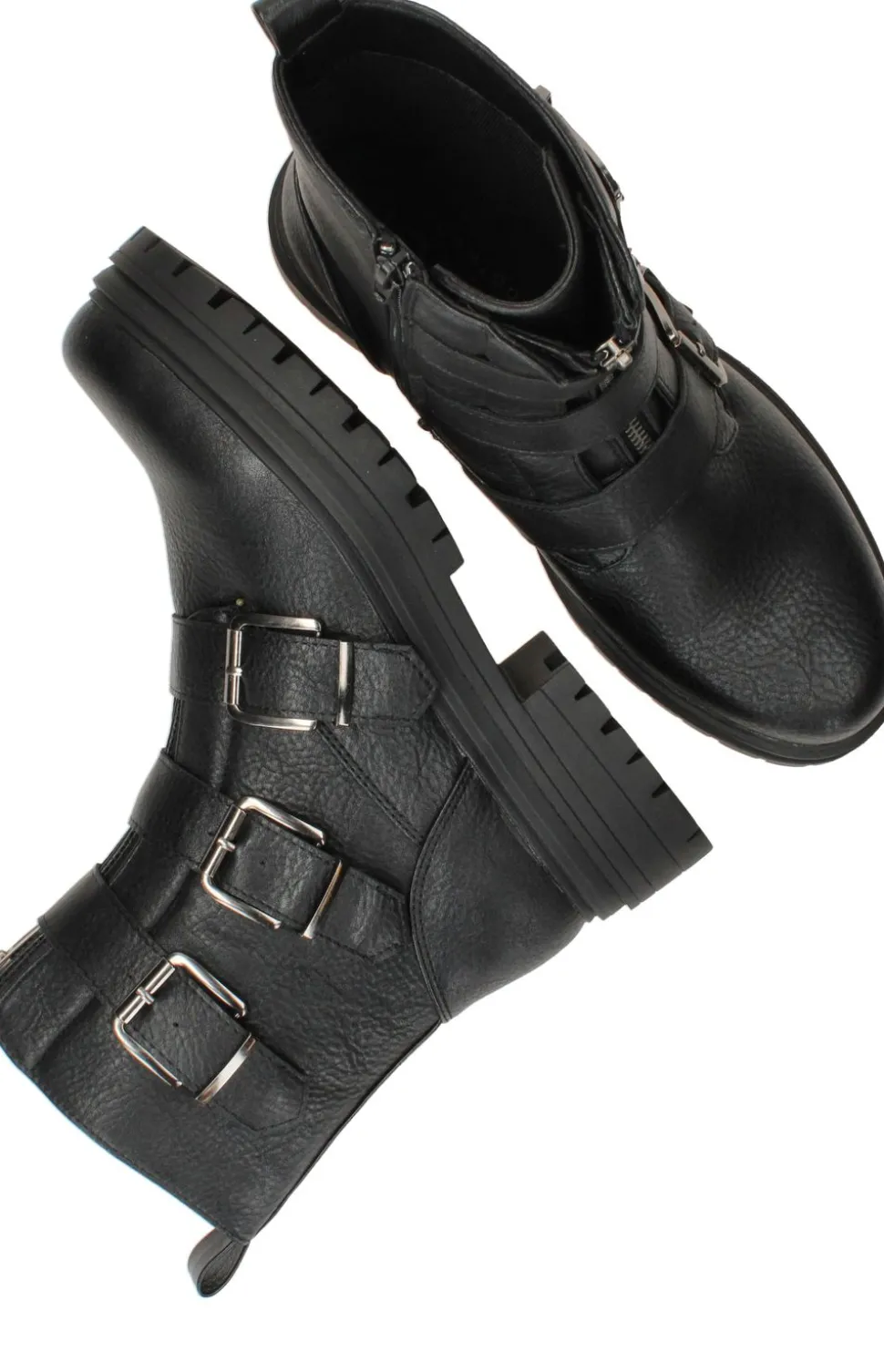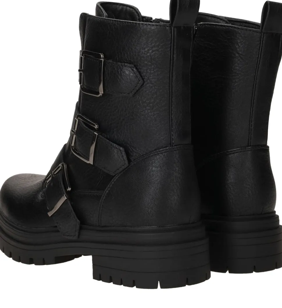 - De bikerboots zijn gemaakt van kunstleer en textiel.