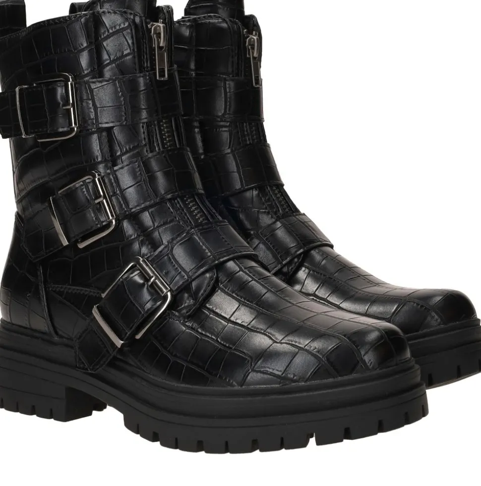 - De bikerboots zijn gemaakt van kunstleer en textiel.