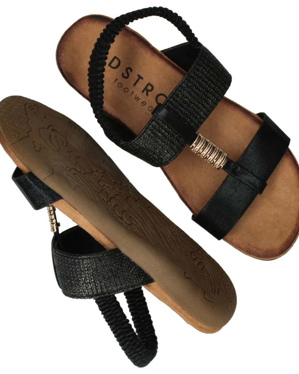 Deze zwarte van zijn de perfecte mix van comfort en stijl. Het elastische bandje zorgt voor een makkelijke instap, terwijl het zachte voetbed zorgt voor aangenaam loopcomfort. De decoratieve metallic ringetjes geven een speelse twist aan het verder tijdloze ontwerp. Ideaal voor dames die graag moeiteloos stijlvol voor de dag komen.