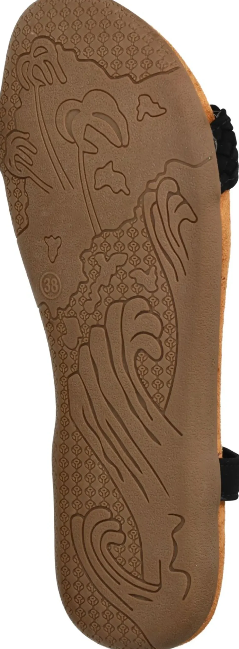 Deze zwarte van zijn een echte blikvanger. De sierlijke geknoopte band met kralen en metallic accenten geeft een elegante, zomerse look. De elastische hielband zorgt voor extra gemak bij het aantrekken, en het zachte voetbed biedt comfort bij elke stap. Een stijlvolle sandaal voor zonnige dagen, strandwandelingen of een avondje uit.