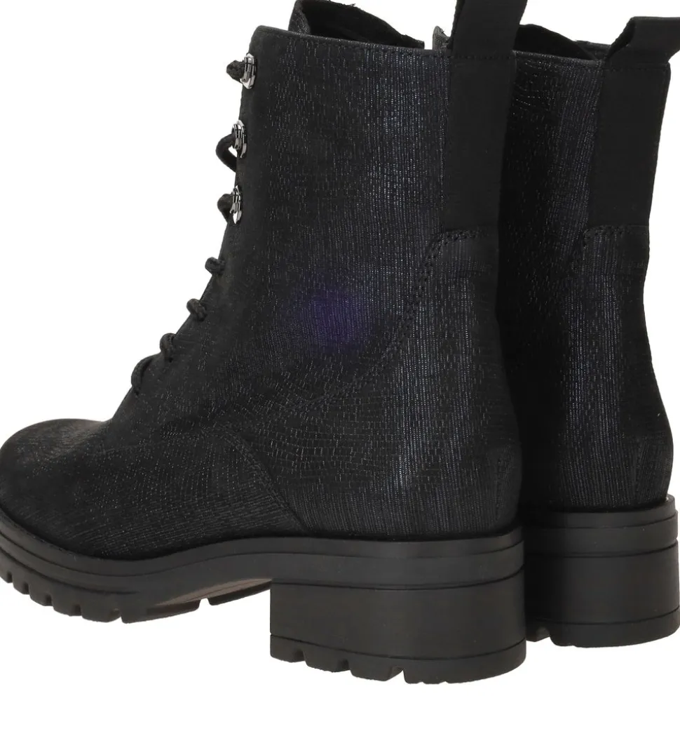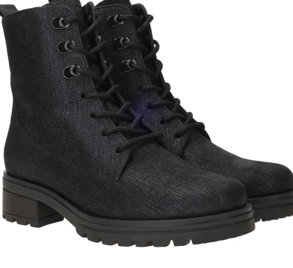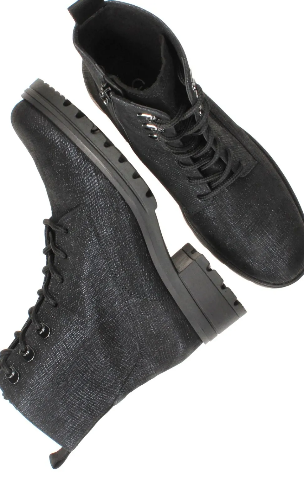 - De damesschoen heeft een veter- en ritssluiting.