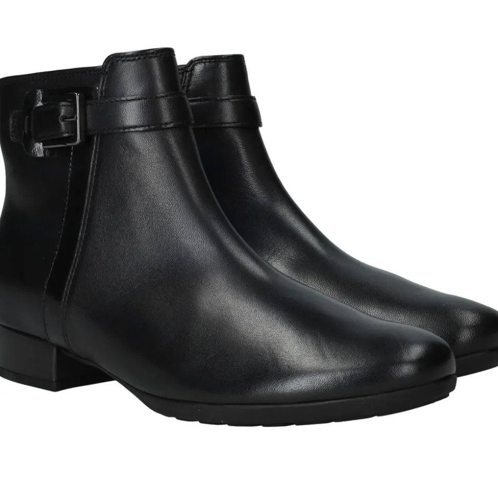 De enkellaarsjes zijn een elegante en comfortabele keuze voor dames. Deze zwarte zijn uitgevoerd in leer en hebben een H-voetbreedte, waardoor ze extra ruimte en draagcomfort bieden. Dankzij de lage hak en subtiele gesp zijn ze veelzijdig en perfect voor zowel dagelijks gebruik als geklede gelegenheden.