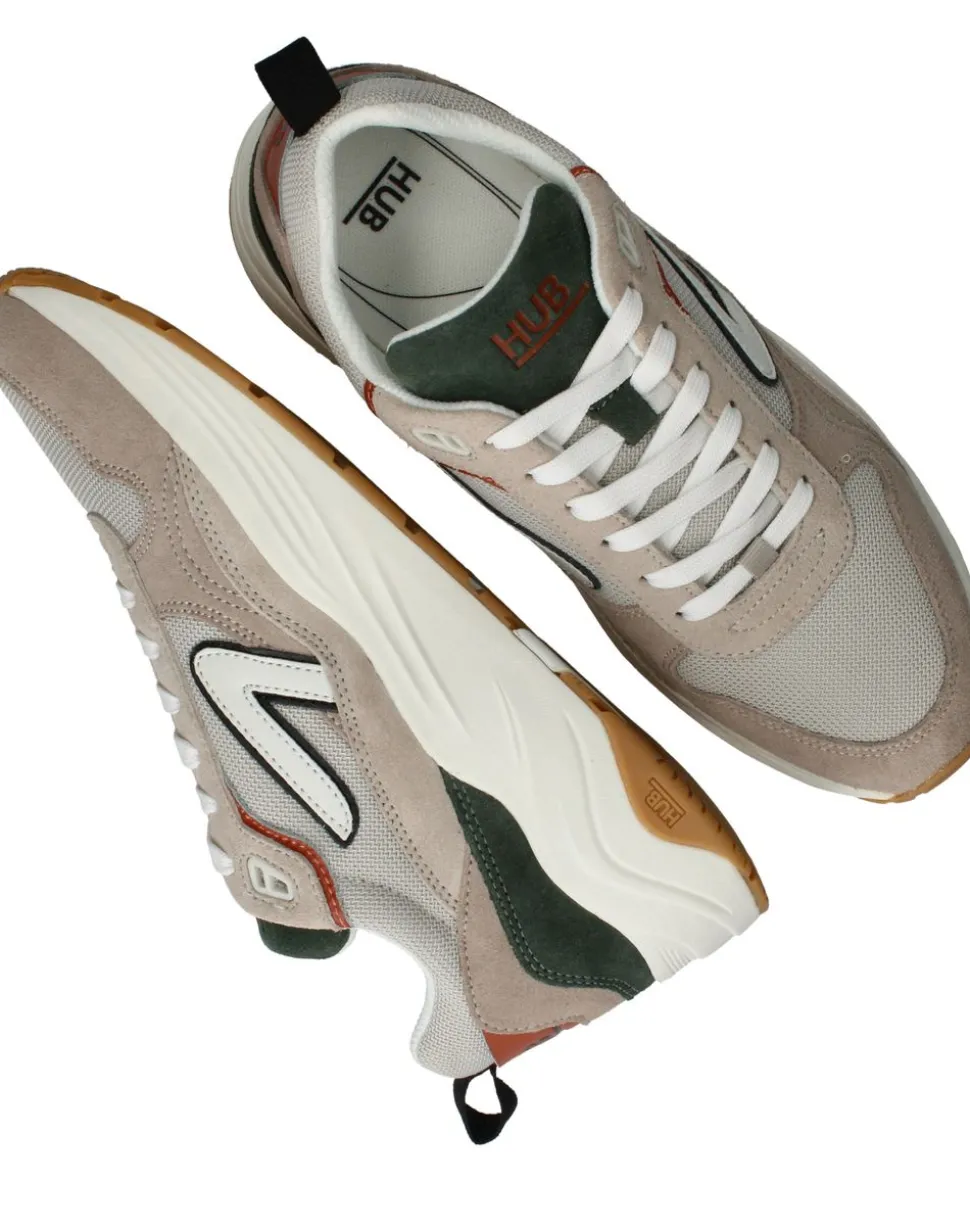 Deze grijs-beige Glide sneakers combineren sportieve flair met optimaal comfort. Het bovenwerk van suède en textiel zorgt voor een dynamische uitstraling en een aangenaam licht gevoel aan de voet. Dankzij de zachte textiele voering en de goed dempende zool zijn deze ideaal voor dagelijks gebruik. De mix van neutrale en donkergroene accenten maakt ze perfect te combineren met iedere casual outfit.