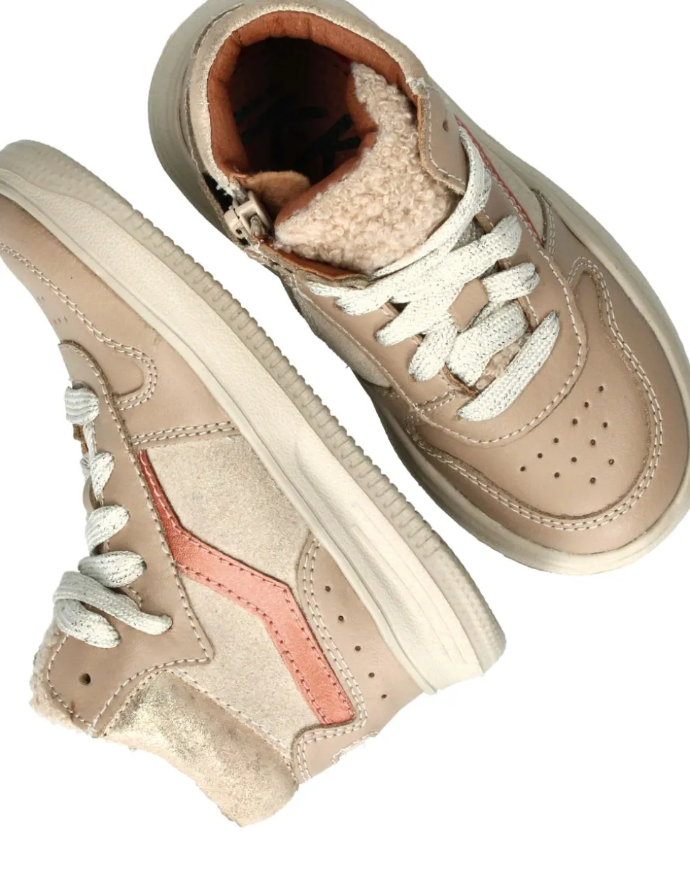 - Deze meidenboot heeft een veter- en ritssluiting.