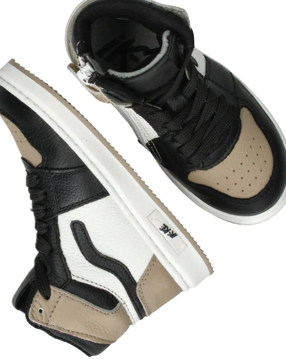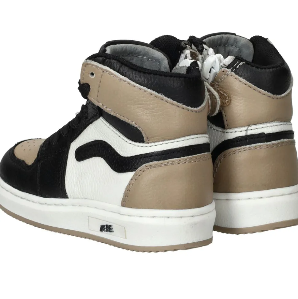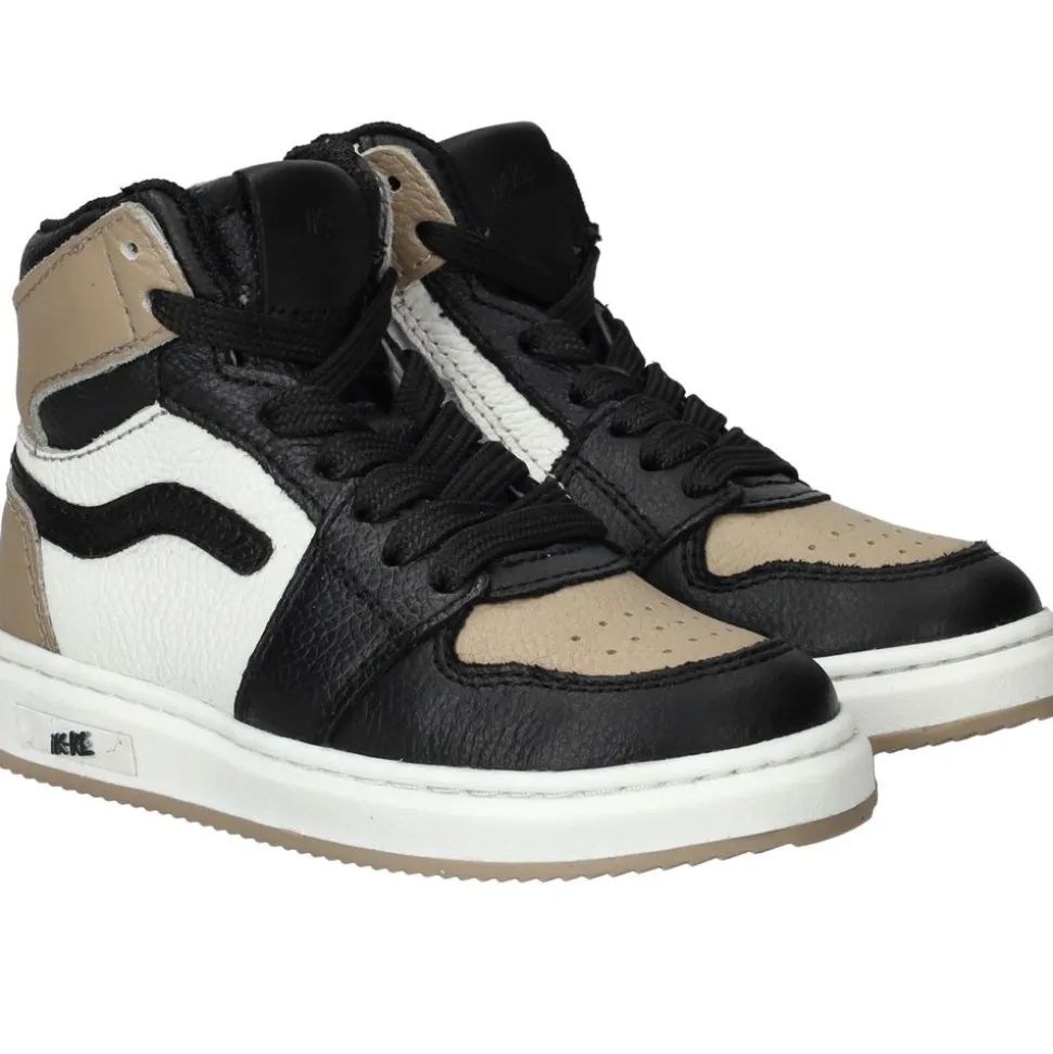 Deze zwarte sneakers zijn gemaakt van stevig glad leer en hebben een stoere, tijdloze look. De combinatie van veters en rits maakt ze makkelijk aan en uit te trekken, ideaal voor drukke ochtenden. Dankzij het uitneembare voetbed kunnen ze ook gedragen worden met eigen steunzolen. Deze zijn perfect voor school, buiten spelen of gewoon elke dag.