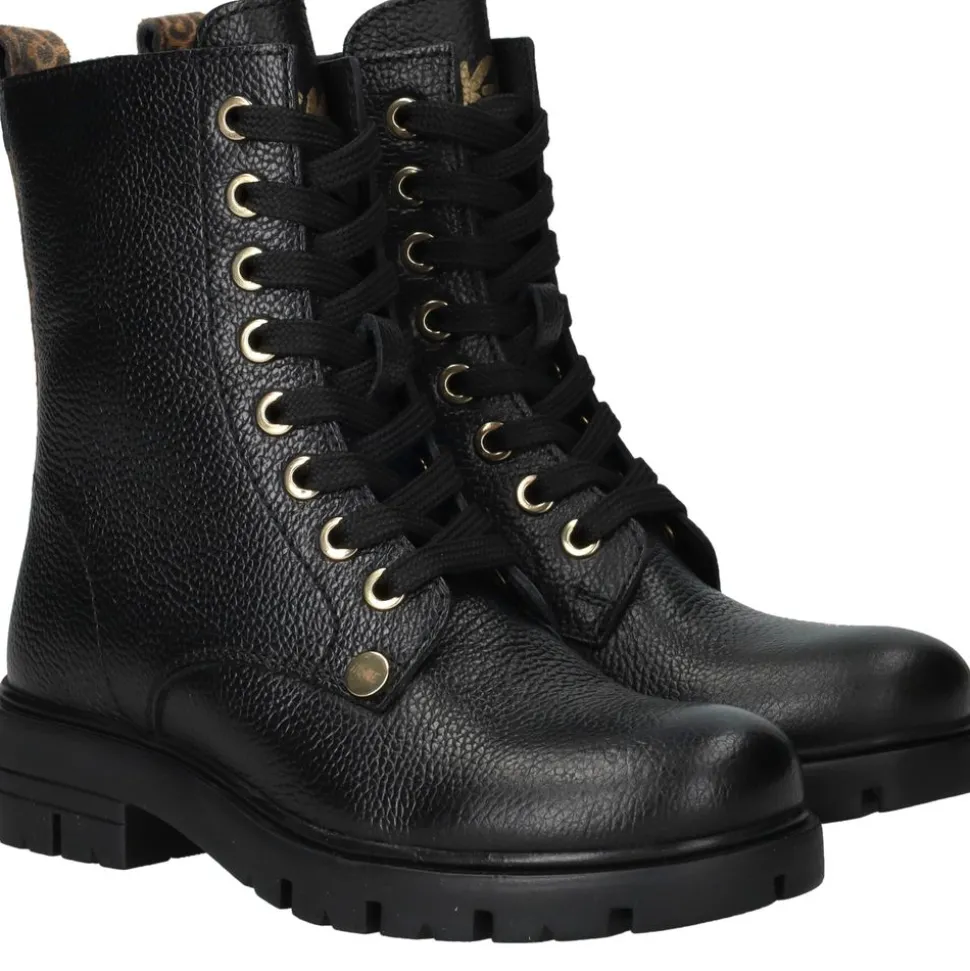 Deze IK-KE veterboot is een robuuste en stijlvolle keuze voor meiden. Uitgevoerd in zwart glad leer met een comfortabele voering van leer en textiel, biedt deze boot niet alleen een trendy uitstraling, maar ook langdurig draagcomfort. Dankzij de veters en de ritssluiting is de schoen eenvoudig aan en uit te trekken. Het uitneembare voetbed maakt de veterboot ook geschikt voor eigen inlegzolen.