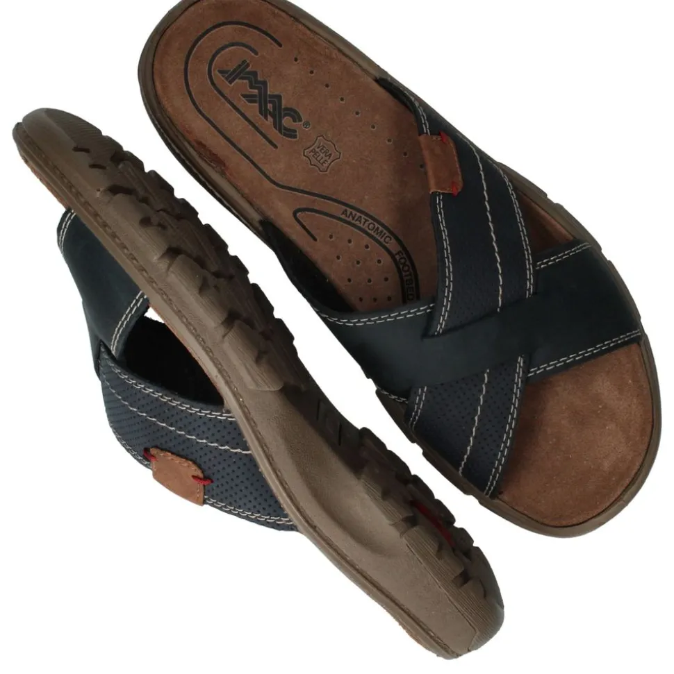 Deze comfortabele van combineren een sportieve uitstraling met het comfort dat je van dit merk gewend bent. De kruisbandsluiting is gemaakt van blauw leer en kunstleer met contrasterende stiksels en subtiele perforaties. Dankzij de zachte textiele voering en normale voetbreedte G biedt deze slipper aangenaam loopgemak op warme dagen.