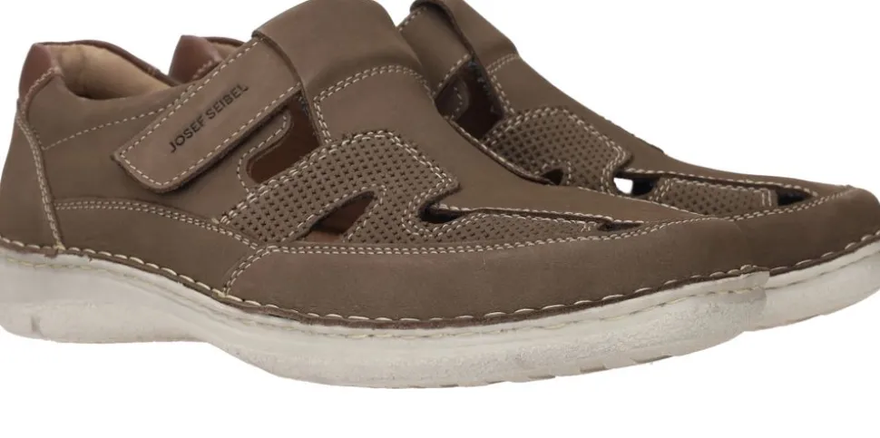 - Je sluit de herensandaal met een klittenbandsluiting.