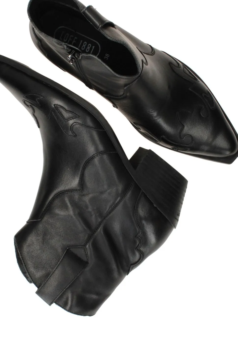 - De enkellaars heeft een blokhak van ongeveer 3 centimeter hoog.