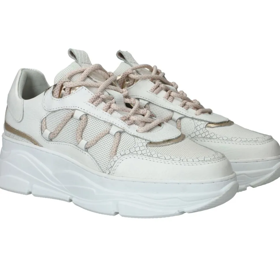 - De sneakers zijn gemaakt van leer en metallic.