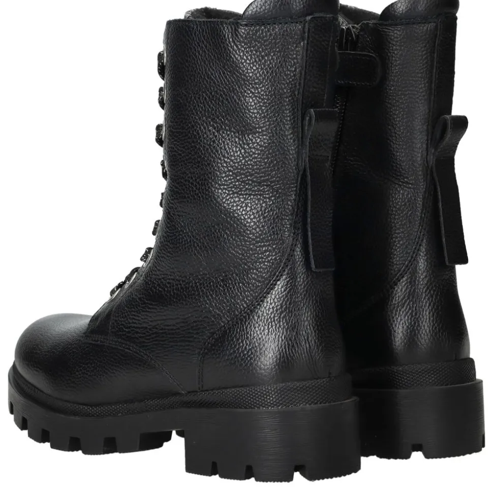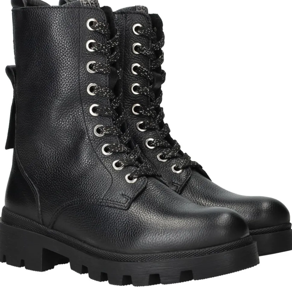 Deze stoere zwarte van zijn een must-have voor elke modieuze meid. Het stevige leer zorgt voor duurzaamheid, terwijl het uitneembare voetbed extra comfort biedt. De robuuste zool geeft een coole look én goede grip, ideaal voor elk avontuur op het schoolplein of in de stad.