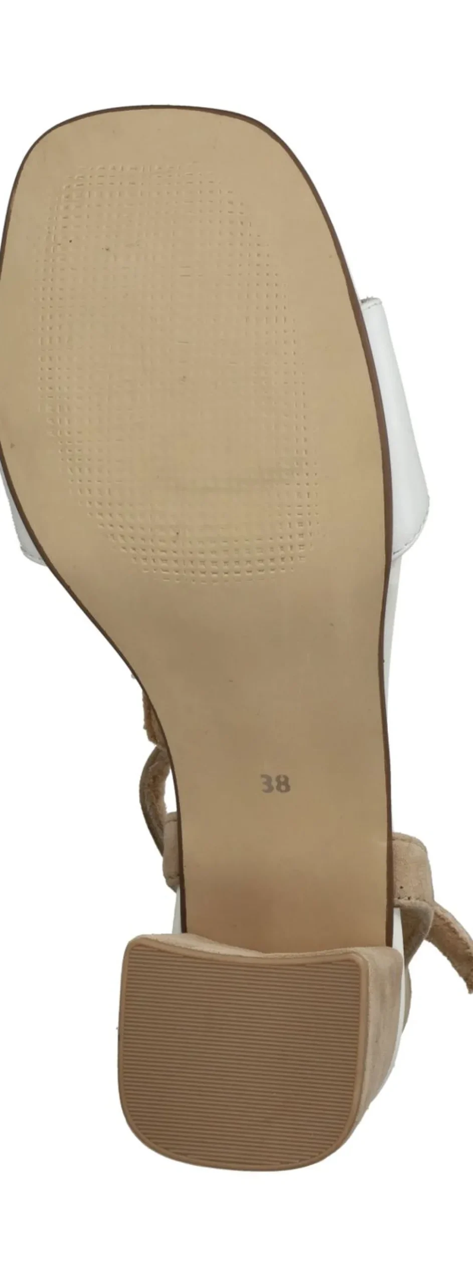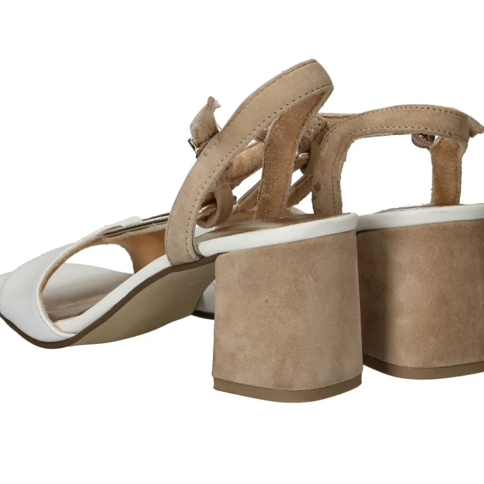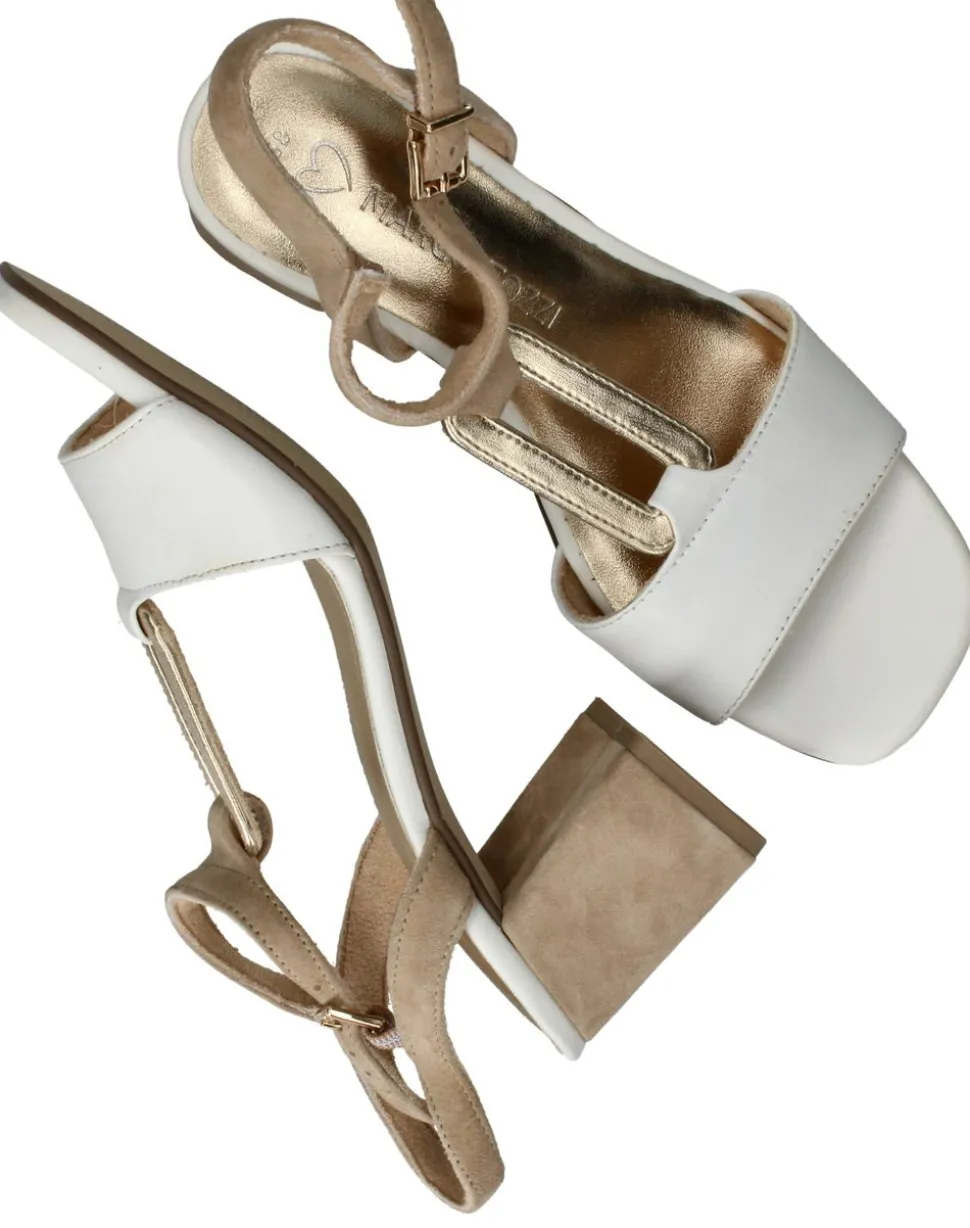 Met deze van geef je jouw zomerse outfit een vrouwelijke en stijlvolle upgrade. De combinatie van wit leer en beige synthetisch materiaal zorgt voor een frisse look en een fijne pasvorm. Dankzij de middelhoge hak loop je comfortabel én elegant, perfect voor elke gelegenheid. Deze zijn een must-have voor de zonnige dagen.