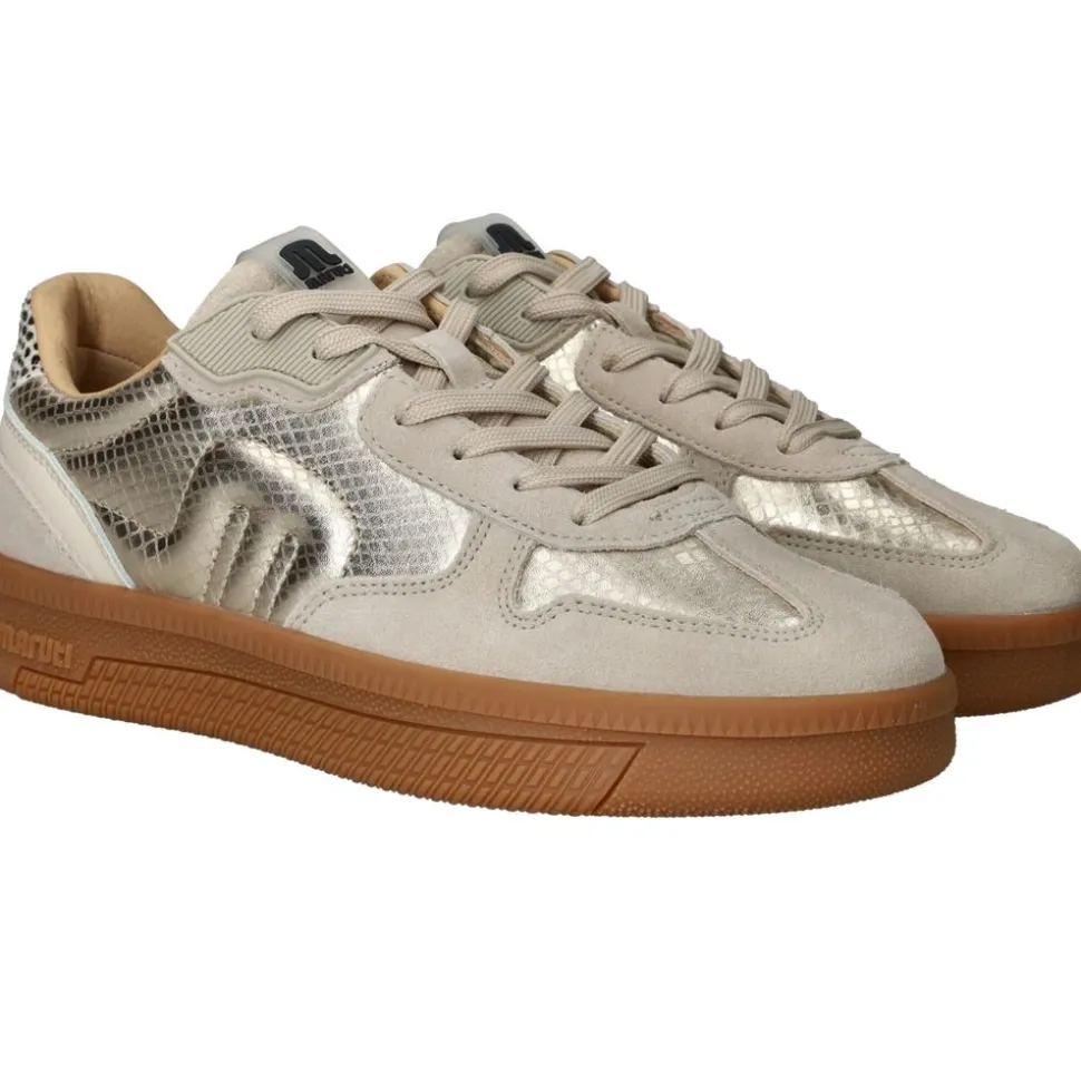 De voor dames is een stijlvolle mix van casual en chic. Het bovenwerk van suède en metallic leer zorgt voor een opvallende, luxueuze uitstraling. Dankzij de leren voering voelt de schoen prettig aan tijdens het dragen en blijf je de hele dag comfortabel lopen.