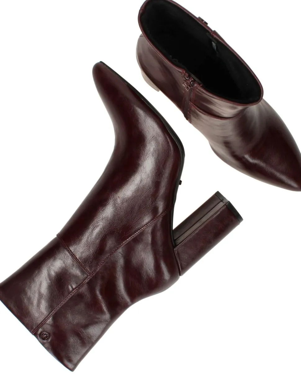 Deze elegante Mexx Kianna Indy enkellaars voor dames in bordeauxrood combineert stijl met draagcomfort. De laars is uitgevoerd met een stevige hak en een tijdloos design dat moeiteloos te combineren is met diverse outfits. Het bovenwerk is gemaakt van hoogwaardig kunstleer, terwijl de voering van kunstleer en warm textiel zorgt voor een comfortabele pasvorm, ook tijdens koudere dagen.