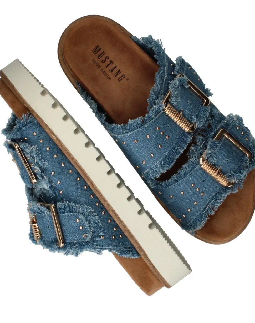 Geef je zomerse outfit een trendy upgrade met de Mustang sandalen, model 1461708. Deze damessandalen in een opvallende denim blauwe kleur zijn vervaardigd uit hoogwaardig textiel, wat zorgt voor een comfortabele en stijlvolle uitstraling. De sandalen zijn voorzien van een comfortabele plateauzool en opvallende gespen, waardoor ze perfect zijn voor een dagje shoppen of een zomerse avond uit. Met deze sandalen loop je niet alleen comfortabel, maar maak je ook een fashion statement.