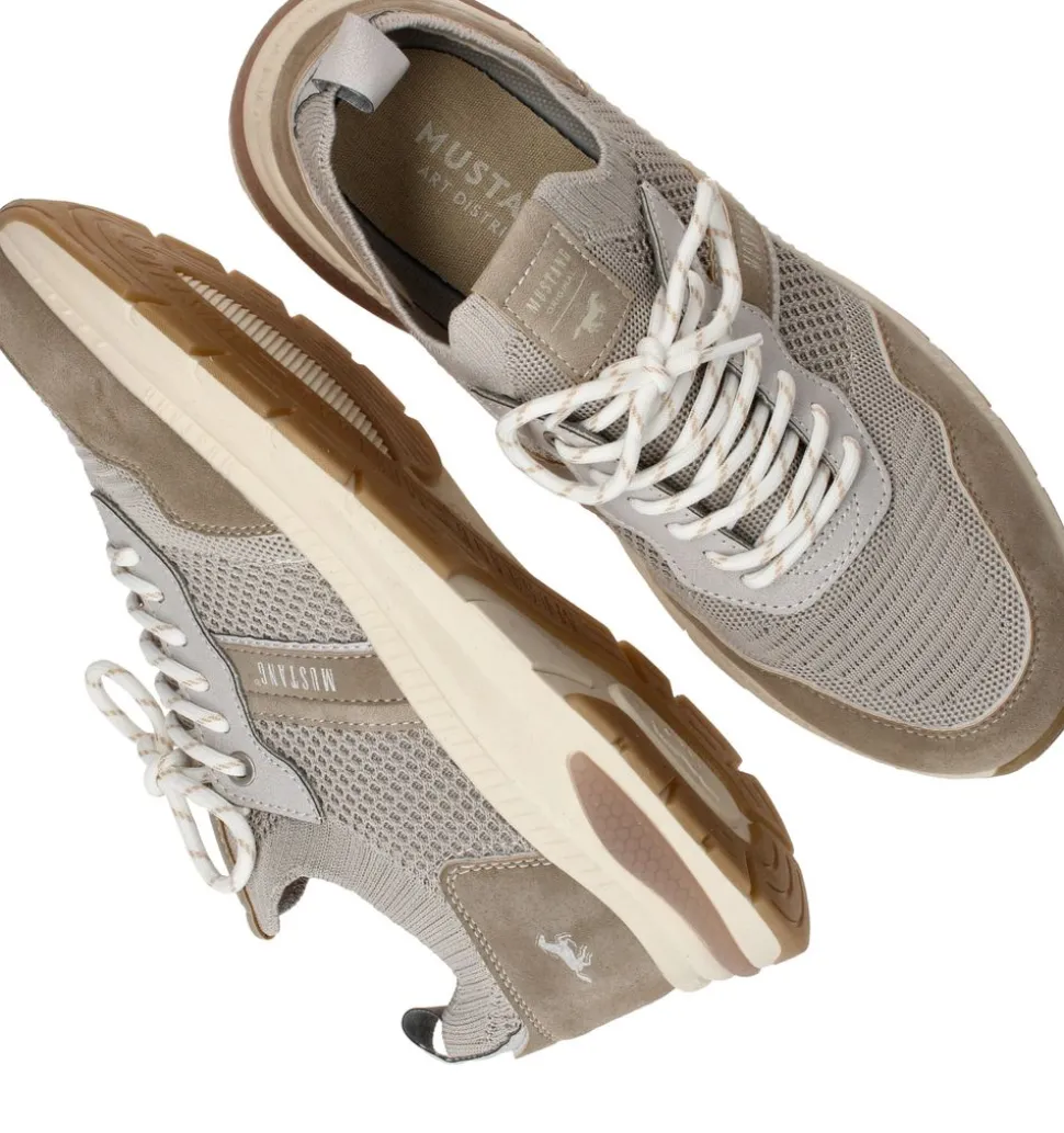 - De sneakers zijn gemaakt van een combinatie van textiel en kunstleer.