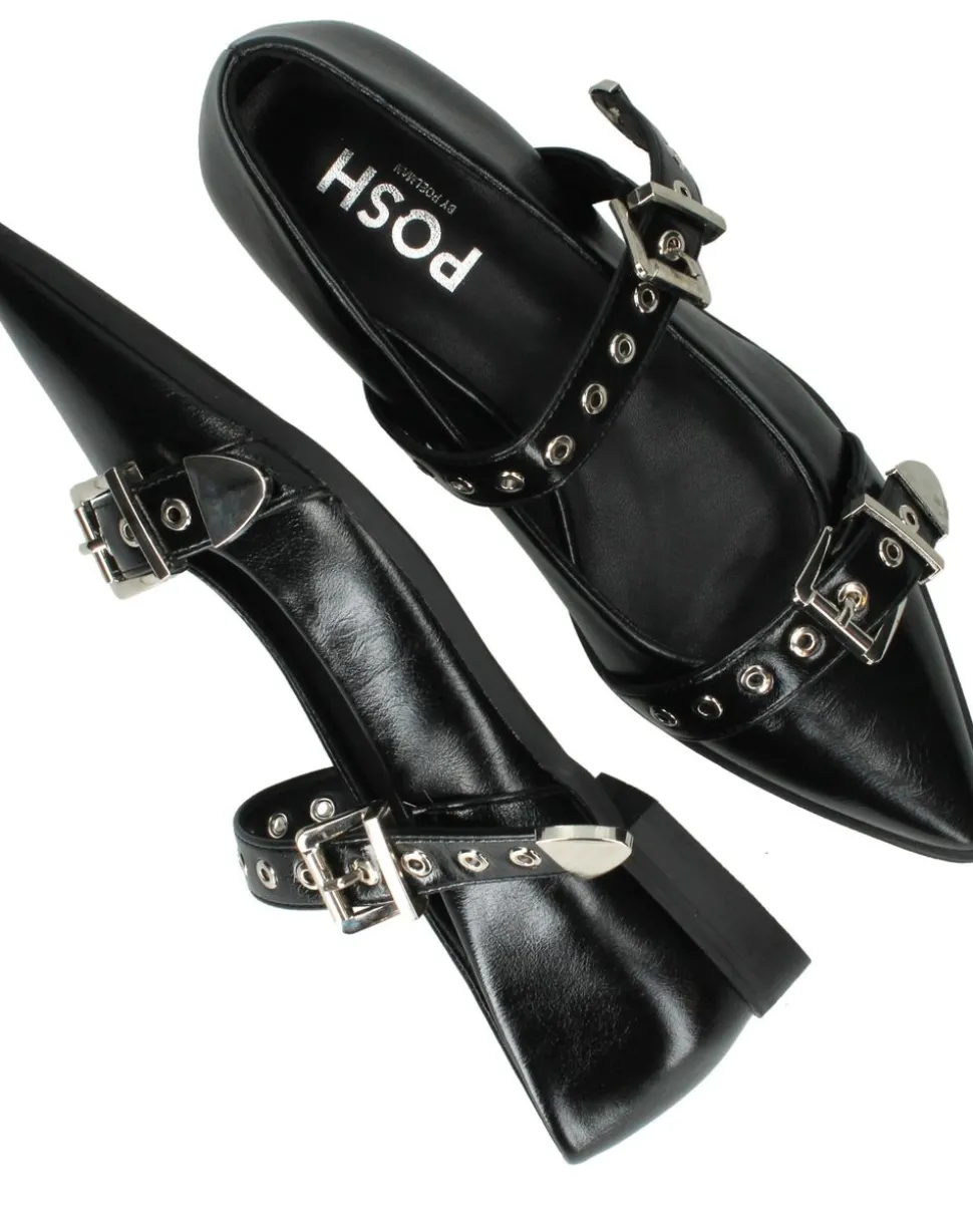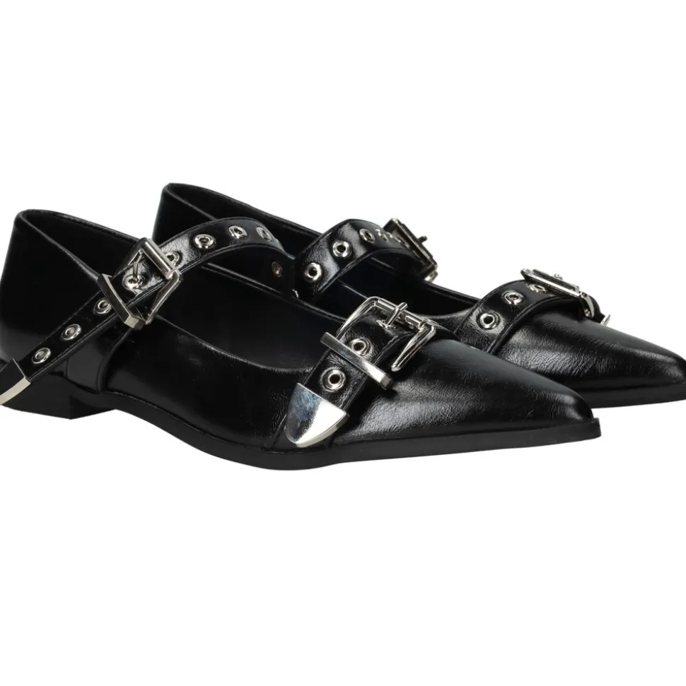 Deze zwarte ballerina’s zijn een stijlvolle keuze voor dames die houden van een verfijnde, moderne uitstraling. Het ontwerp met dubbele gespsluiting voegt een stoere en eigentijdse twist toe. Dankzij het gebruik van kunstleer aan zowel de buitenkant als de voering zijn deze ballerina’s licht in onderhoud en duurzaam in gebruik.