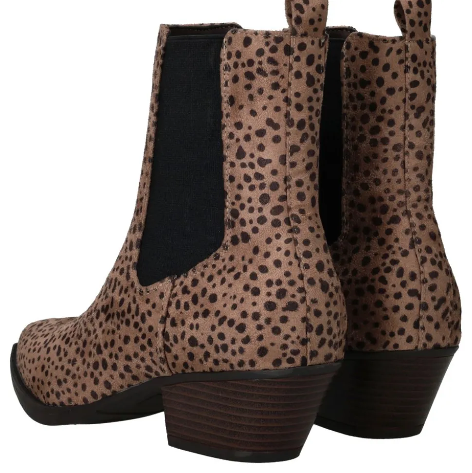 De enkellaarsjes zijn een echte eyecatcher voor dames die houden van een trendy en speelse look. Deze beige zijn uitgevoerd in kunstsuède met een opvallende panterprint. Dankzij de stevige blokhak en het comfortabele design zijn ze zowel stijlvol als praktisch om dagelijks te dragen.