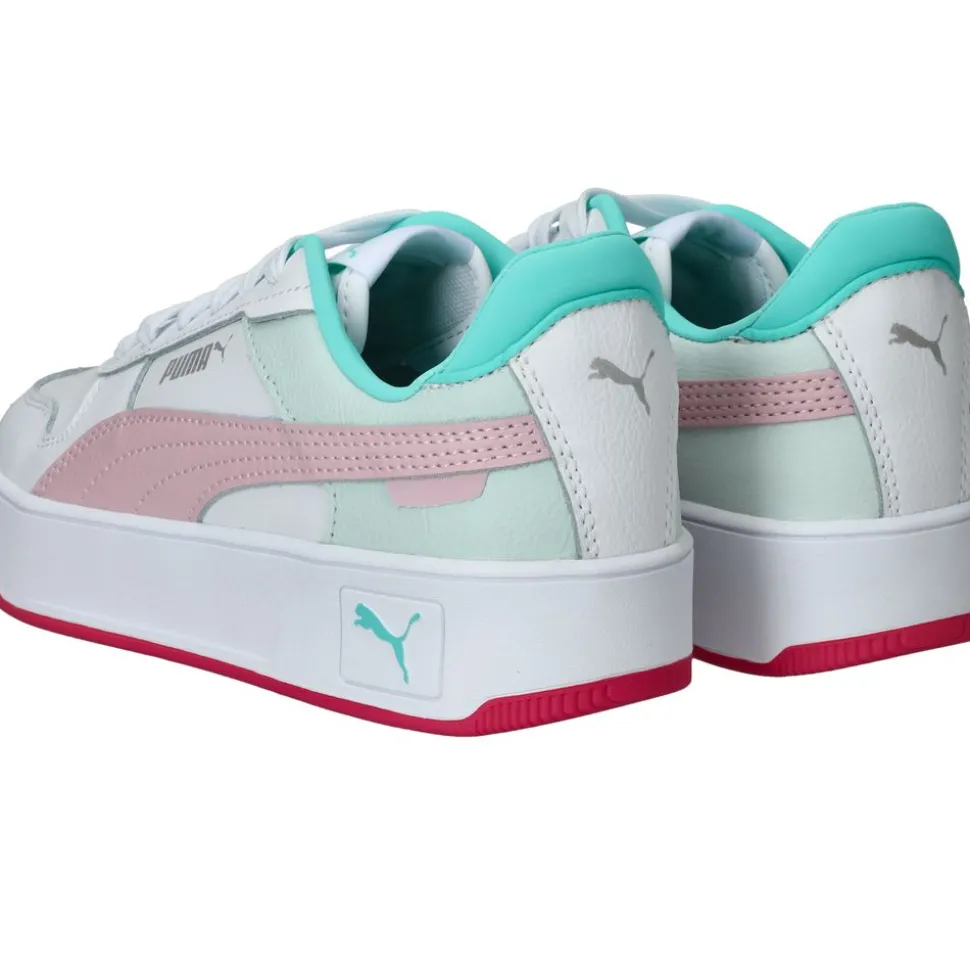 Laat je voeten stralen met de Puma Carina Street sneakers, perfect voor de trendy meiden! Deze meisjesschoenen in een frisse witte kleur met roze en lichtblauwe accenten zijn vervaardigd uit duurzaam imitatieleer, wat zorgt voor een stijlvolle look en een comfortabele pasvorm. De Carina Street sneakers combineren een klassiek design met moderne details, waardoor ze perfect zijn voor elke gelegenheid. Of je nu naar school gaat of een dagje uit bent, deze sneakers geven elke outfit een speelse en trendy touch.