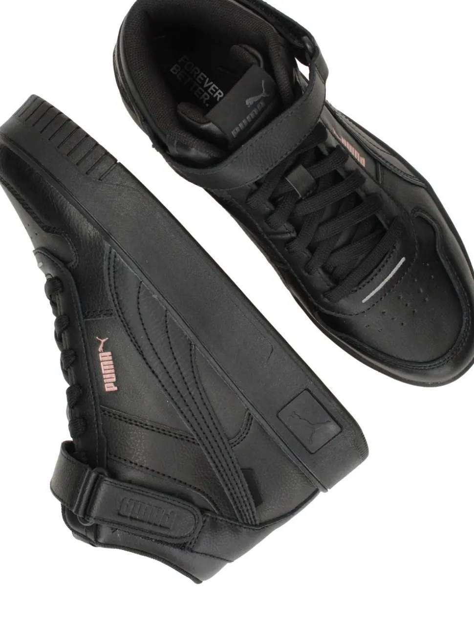 - Je sluit de sneaker met veters en klittenband.