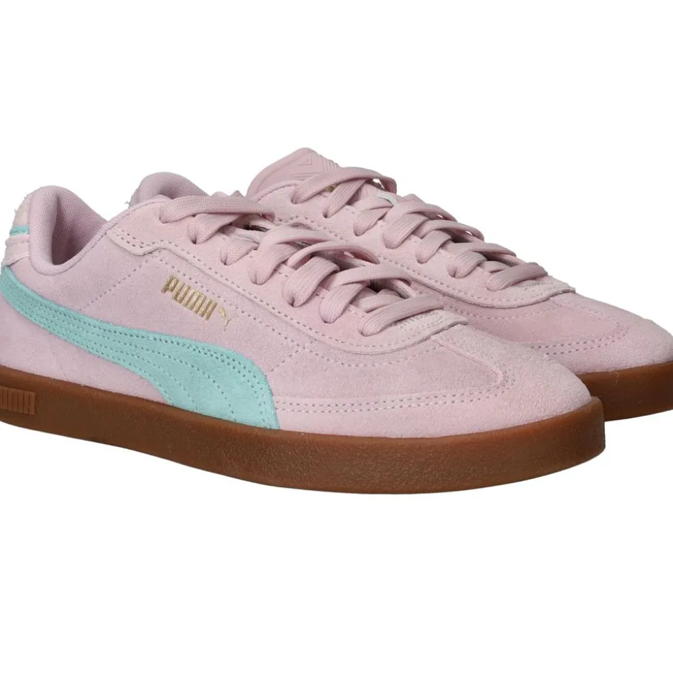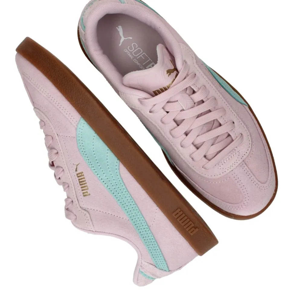 - De sneakers zijn helemaal gemaakt van suède.