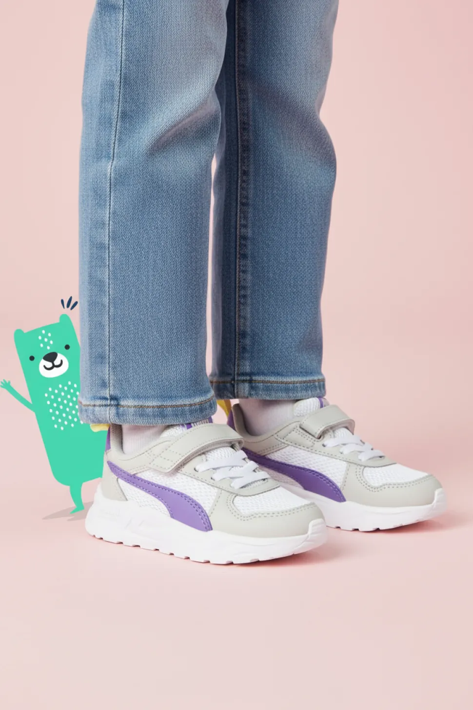 Deze sportieve van combineert stijl en comfort in een opvallend design. Met een frisse kleurenmix van wit, grijs en lila is dit een echte eyecatcher voor elke outfit. De stevige zool biedt extra grip tijdens het spelen en bewegen.