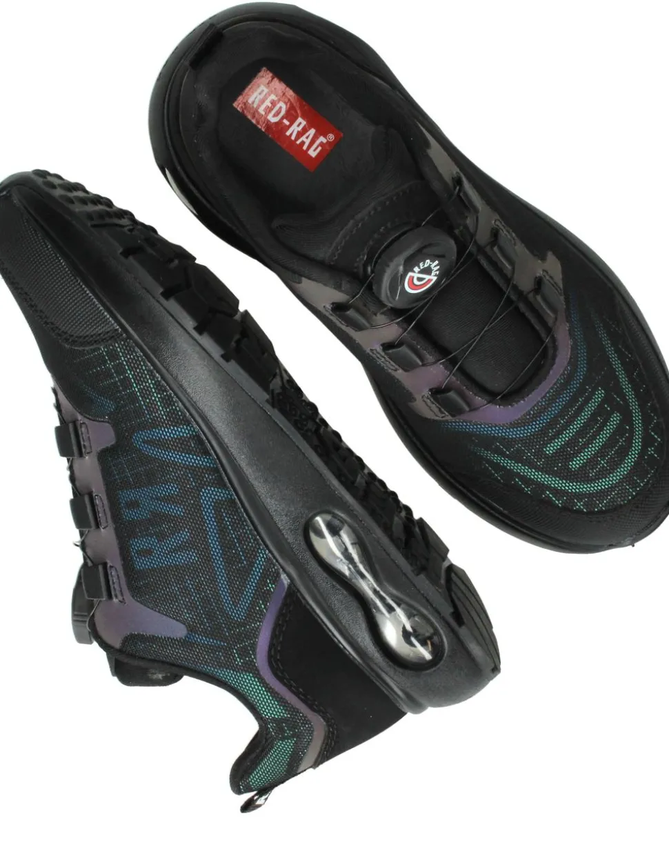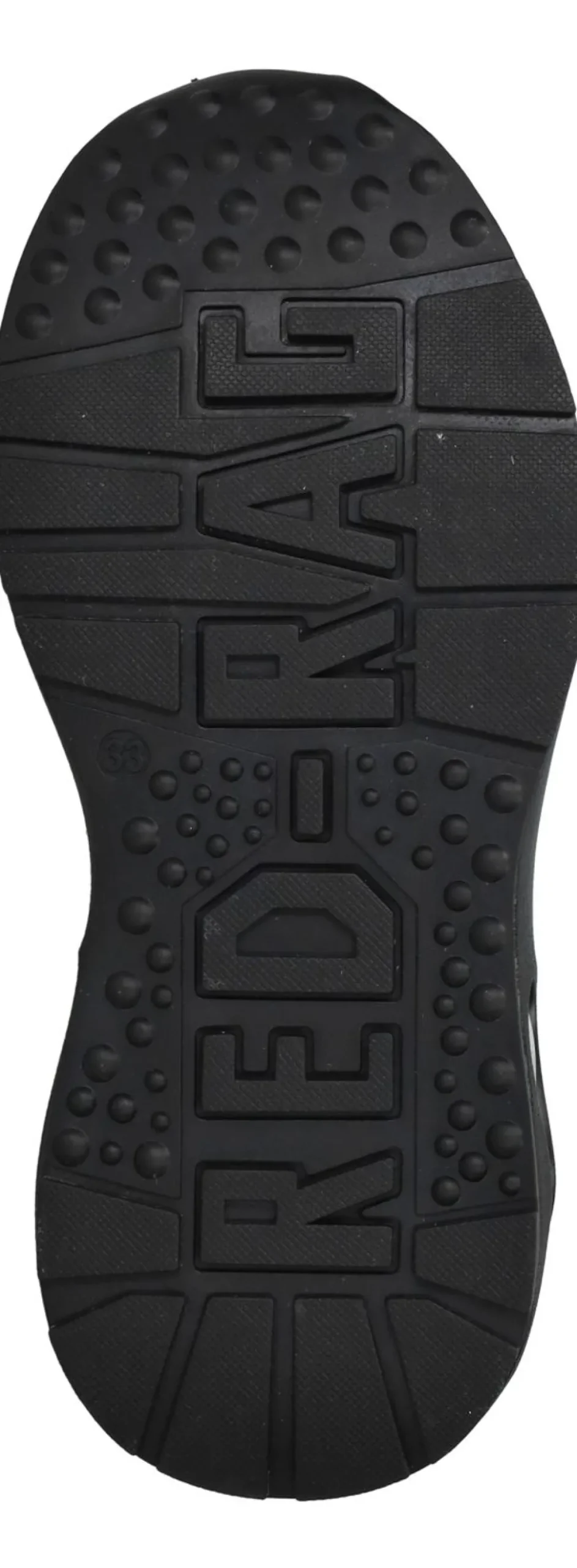 Deze zwarte Red Rag sneaker is een sportieve en eigentijdse schoen met een unieke druk- en draaisluiting. Perfect voor wie gemak en stijl wil combineren.
