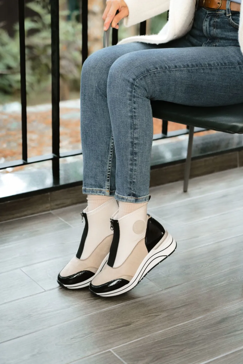 Met deze beige van combineer je moeiteloos stijl met comfort én duurzaamheid. De schoen is volledig vegan en heeft een moderne voorrits, waardoor je er makkelijk in stapt. Dankzij de comfortabele voetwijdte H en de dempende zool loop je er de hele dag heerlijk op rond. De kleurcombinatie van beige en zwart maakt deze boot een echte blikvanger.
