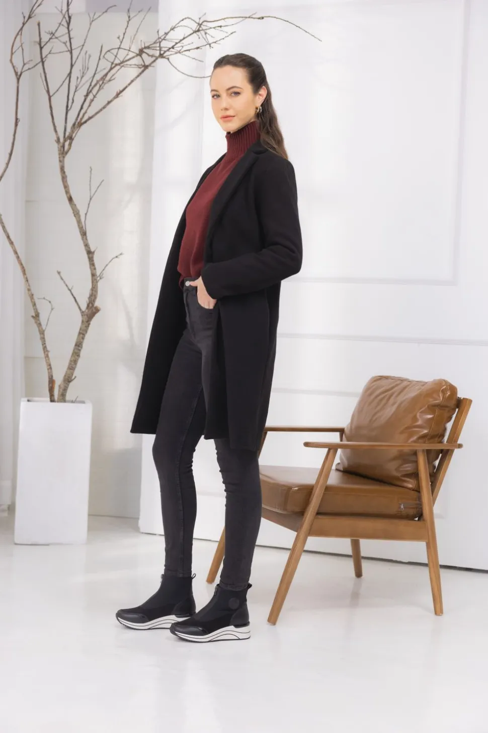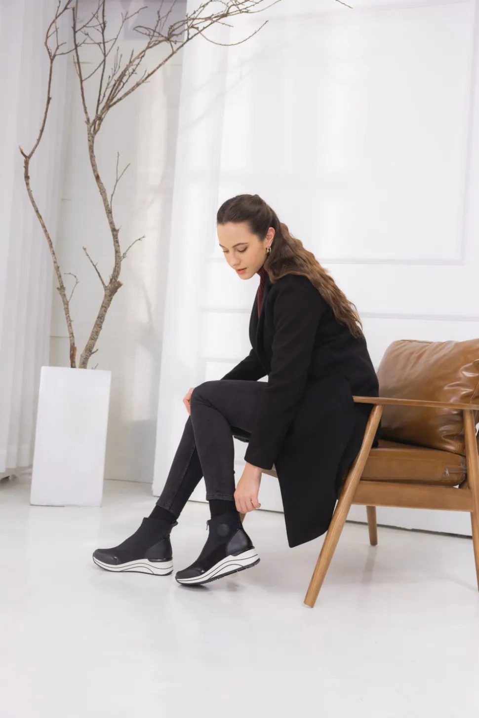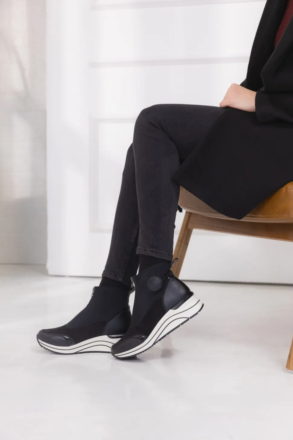 Deze zwarte van is volledig gemaakt van vegan materialen en biedt niet alleen stijl maar ook comfort. Dankzij de voetwijdte H is deze boot perfect voor dames met een bredere voet. De ritssluiting aan de voorzijde zorgt voor een moderne uitstraling en maakt het instappen extra makkelijk. De verhoogde zool zorgt bovendien voor een trendy look met extra demping.