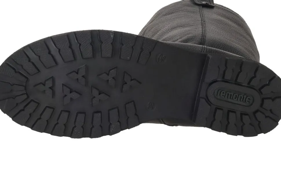 - De laars is gemaakt van leer.