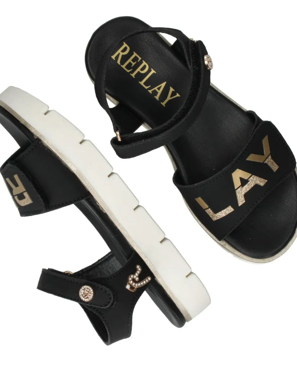 - De sandaal heeft een klittenbandsluiting.
