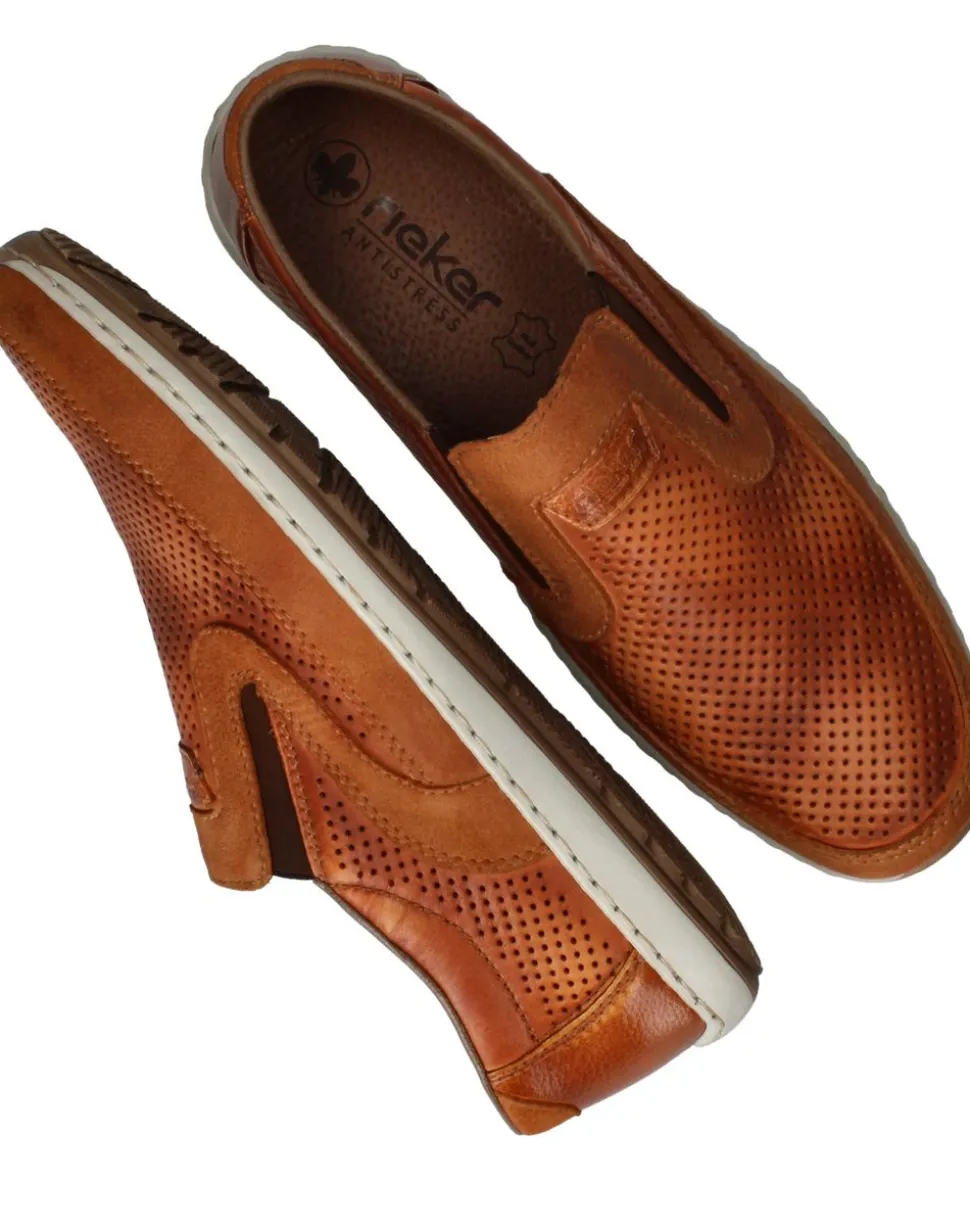 Ervaar ultiem comfort en een tijdloze stijl met de Rieker instappers, model 08858. Deze herenschoenen in een warme bruine kleur zijn vervaardigd uit hoogwaardig leer, wat zorgt voor een luxe uitstraling en een comfortabele pasvorm. De instappers zijn voorzien van een comfortabele zool en een zachte binnenzool, waardoor je de hele dag comfortabel kunt lopen. De subtiele perforaties op het leer geven de schoenen een unieke en trendy touch.