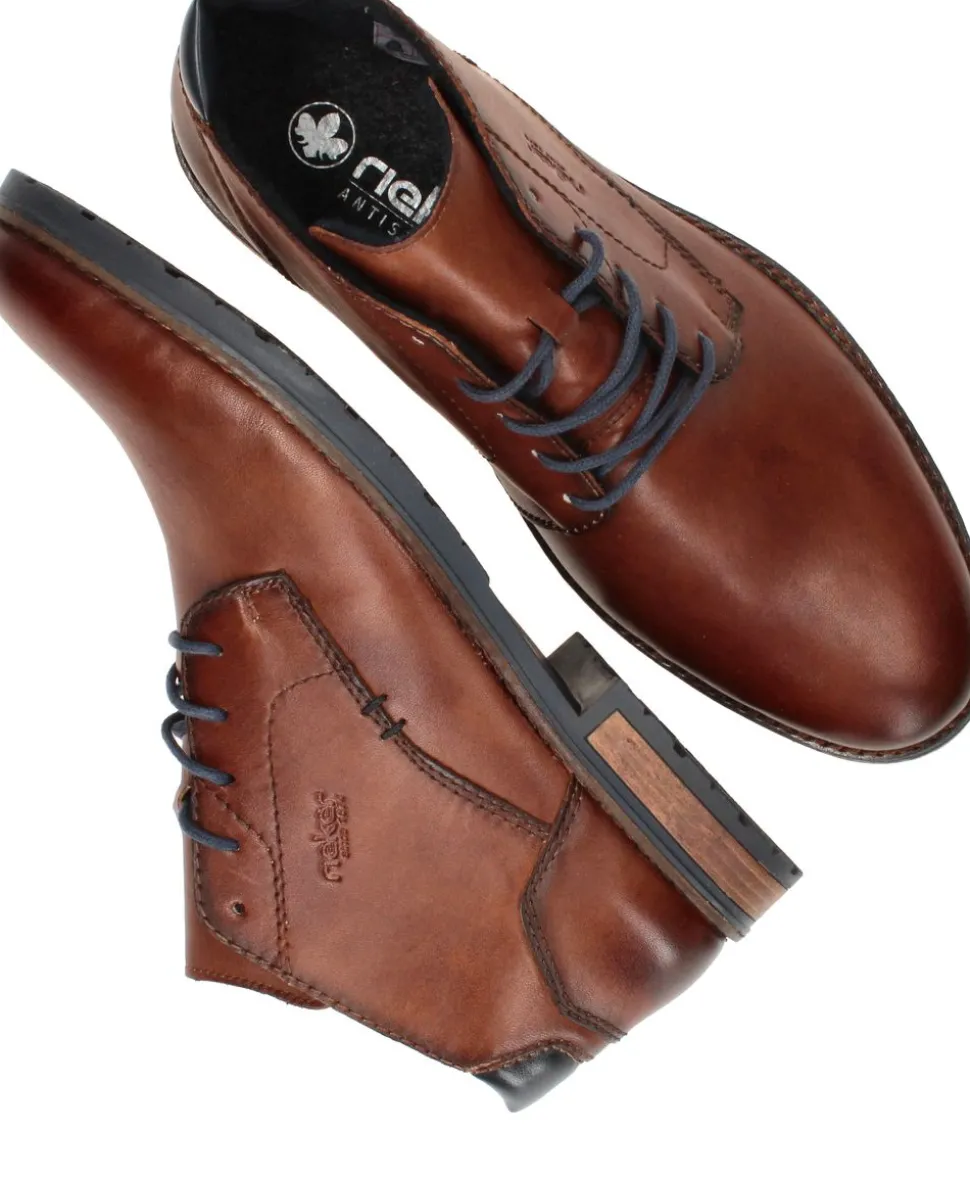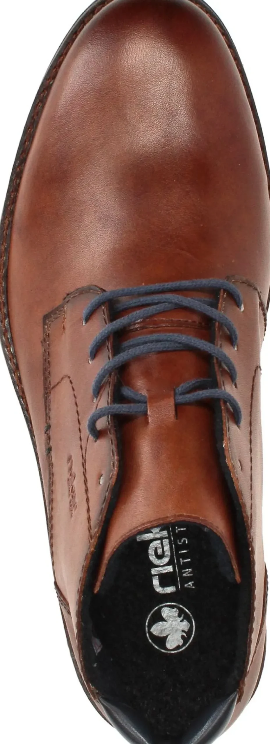 - De veterschoen is gemaakt van leer.
