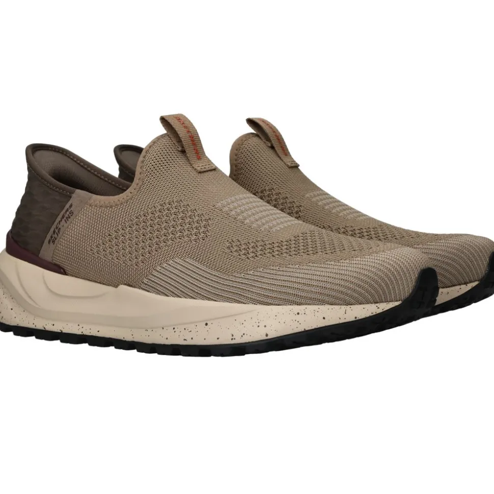 Ervaar ultiem comfort en een sportieve stijl met de Skechers Bogdin-Arlett Slip-Ins sneakers. Deze herenschoenen in een stijlvolle taupe kleur zijn vervaardigd uit ademend textiel, wat zorgt voor een comfortabele pasvorm. De Bogdin-Arlett Slip-Ins sneakers zijn voorzien van een comfortabele zool en een zachte binnenzool, waardoor je de hele dag comfortabel kunt lopen. De opvallende details en de sportieve look maken deze sneakers perfect voor dagelijks gebruik.