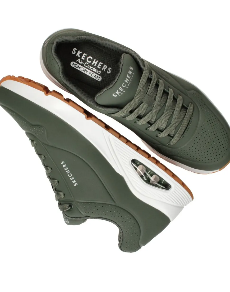 Met de Uno Stand On Air kies je voor een sportieve look met maximaal comfort. Deze groene van kunstleer zijn uitgerust met een zichtbare luchtkussenzool die zorgt voor optimale demping en een trendy uitstraling. Dankzij de G-voetbreedte sluit de schoen comfortabel aan en is hij perfect voor dagelijks gebruik.