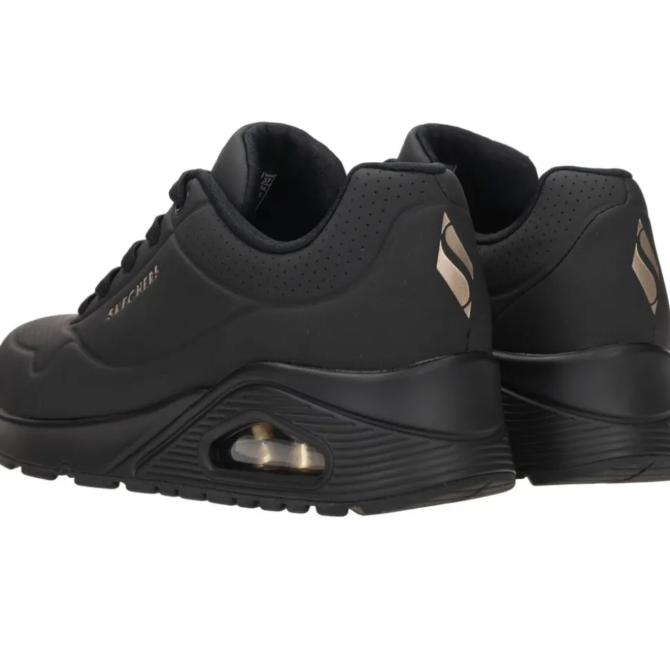 De van bieden een perfecte balans tussen stijl en comfort. Deze zwarte Skechers Uno Stand on Air is gemaakt van duurzaam kunstleer met een zachte textielvoering, speciaal ontworpen voor dames die graag de hele dag actief zijn. De luchtkussenzool zorgt voor extra demping en een licht gevoel bij elke stap.
