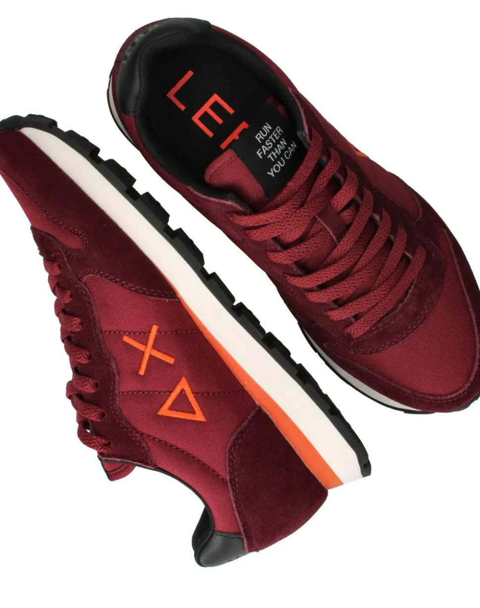 De Tom Solid sneakers zijn een opvallende en sportieve keuze voor heren. Het bovenwerk van rood textiel en kunstleer zorgt voor een dynamische uitstraling, terwijl de oranje details en logo’s een frisse, moderne twist geven. Dankzij de zachte textielen voering en de lichte zool bieden deze de hele dag comfort, of je nu onderweg bent of gewoon casual gekleed gaat.