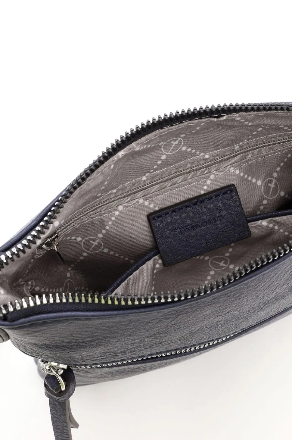 - De tas sluit met een stevige ritssluiting bovenaan, en heeft daarnaast een opvallend schuin ritsvak aan de voorkant voor extra opbergruimte.