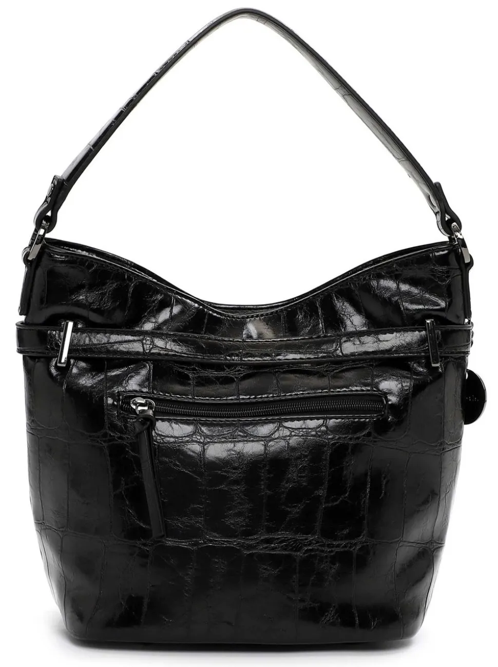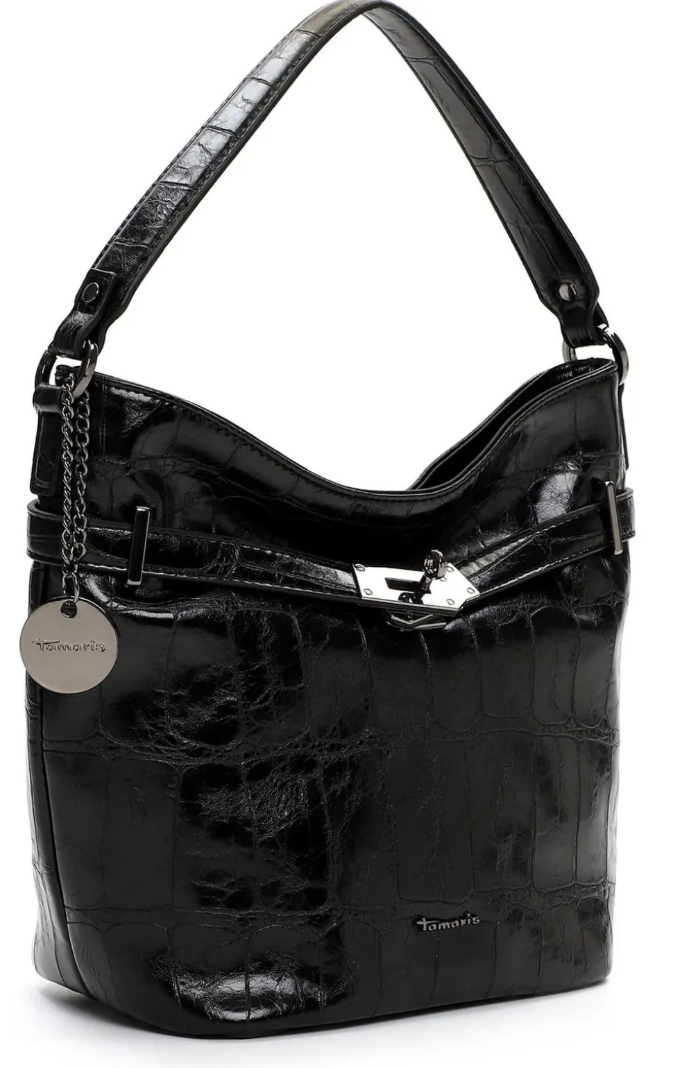 De Tamaris Gulia schoudertas in het zwart is een elegante en veelzijdige tas die perfect past bij iedere outfit. Gemaakt van hoogwaardig kunstleer met een subtiel glanzende crocoprint, straalt deze tas klasse en stijl uit. Dankzij het ruime hoofdvak met kleinere afsluitbare vakjes kun je jouw spullen overzichtelijk en veilig opbergen. De tas is voorzien van zowel een handvat als een verstelbaar schouderhengsel, waardoor je hem op verschillende manieren kunt dragen.