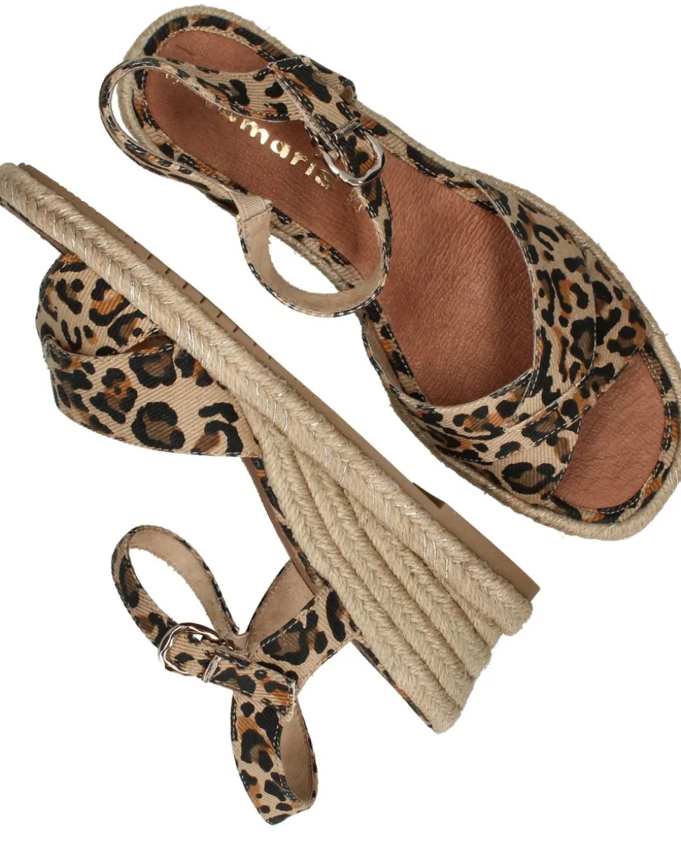 Maak een stijlstatement met deze zomerse van . De opvallende panterprint op het textielen bovenwerk geeft deze sandaal een stoere twist, terwijl de zachte leren voering heerlijk comfortabel aanvoelt. De gevlochten sleehak maakt je look helemaal af en zorgt voor een vrouwelijk silhouet.